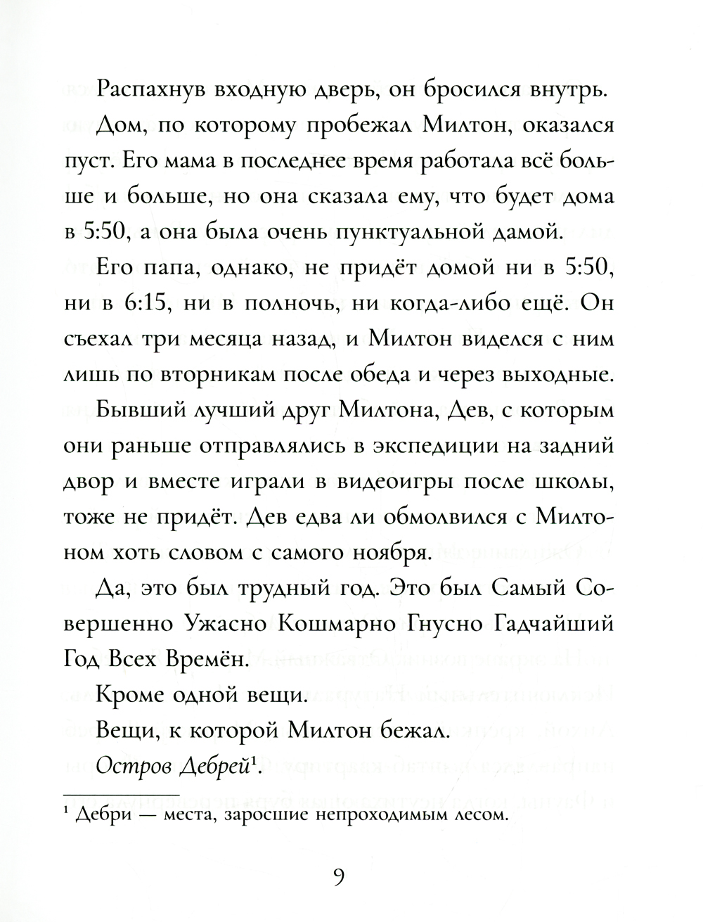 "Навстречу приключениям!" - новая захватывающая и весёлая история от Джесс Редман, автора книг "Квинтэссенция" и "Чудеса", в которой читатель вместе с героем Милтоном во время летних каникул отправится в незабываемое путешествие на Одинокий остров. Обычно Милтон исследует природу только в своих компьютерных играх: он становится то отважным Морским Ястребом, то храбрым исследователем-естествоиспытателем, который преодолевает опасности на каждом шагу, но в этот раз ему предстоит провести лето без гаджетов. Оказавшись в гостях у дяди на острове, Милтон понимает, что это его шанс стать храбрым и блестящим натуралистом, которым он всегда хотел быть, по-настоящему, и даже встретить некоторых других исследователей, обрести друзей и помочь сохранить остров.