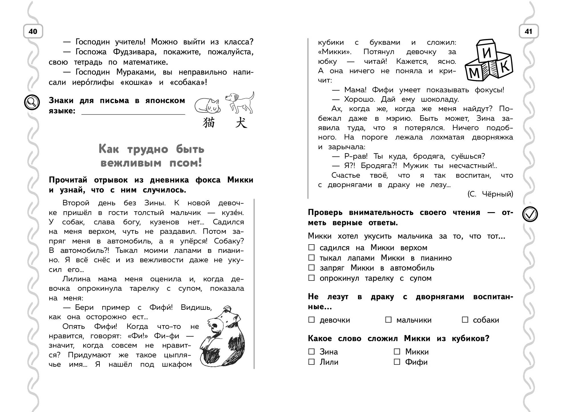 Задача развивающего тренажёра от издательства «ЭКСМО» - сделать из ученика 3 класса настоящего читателя, который бегло читает, понимает прочитанное и постоянно совершенствует навык чтения. В пособии собраны наиболее интересные тексты для третьеклассников на стыке литературного чтения, русского языка и окружающего мира. Некоторые из них взяты из бестселлеров детской литературы, другие написаны автором, кандидатом филологических наук А. А. Бондаренко, признанным специалистом в области русской словесности и букваристики. Каждый раздел предлагает разнообразные задания, которые помогут активизировать личный словарный запас ребёнка. Приводятся краткие сведения о происхождении слов, примеры их употребления, стихотворения для заучивания наизусть, а также тексты для расширения кругозора. Благодаря прогрессивной авторской методике третьеклассники не только усовершенствуют навык чтения, но и значительно обогатят свой словарь, улучшат речевые способности и существенно повысят общую эрудицию.| Издательство | ООО "Издательство "Эксмо" |