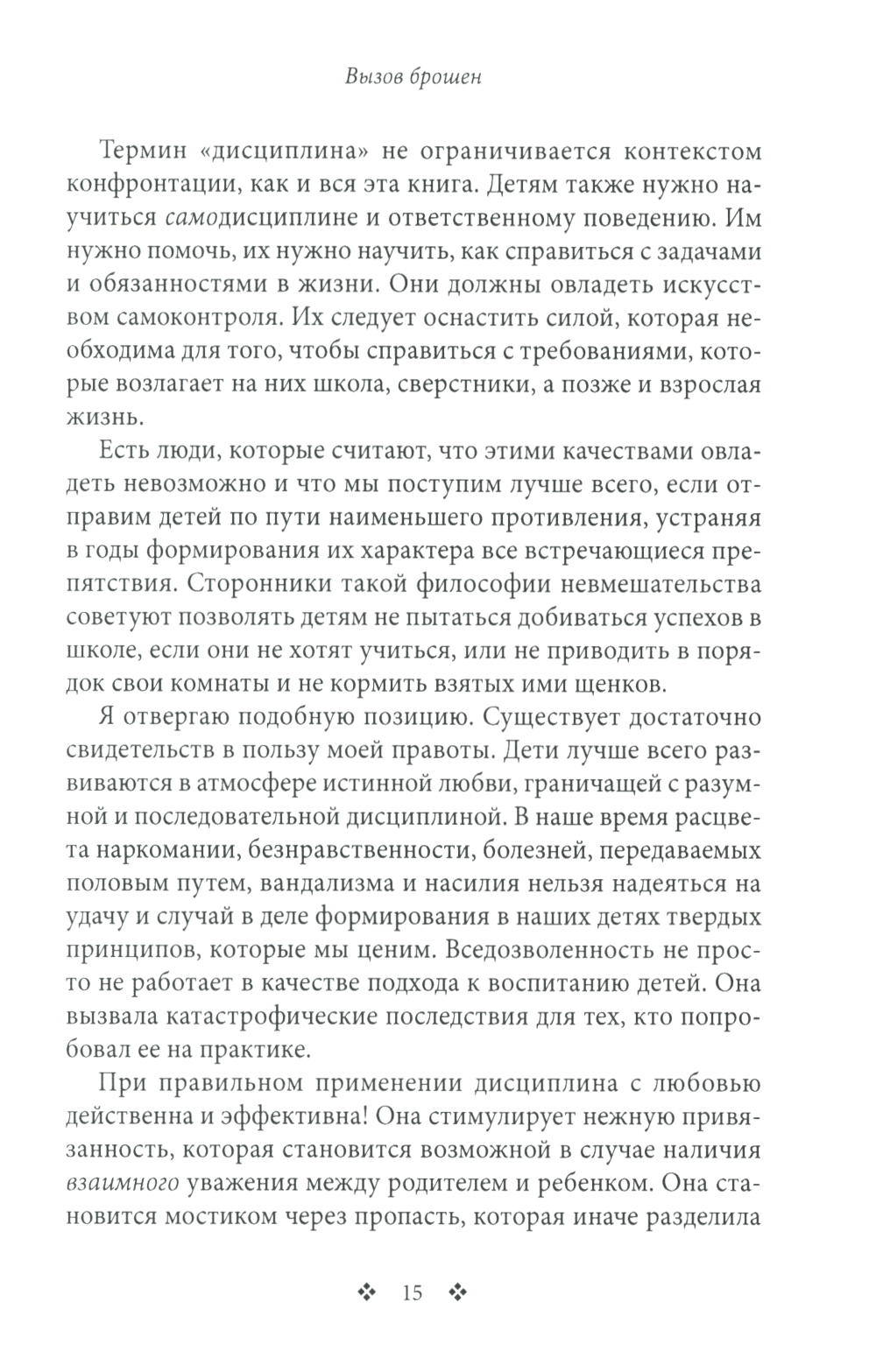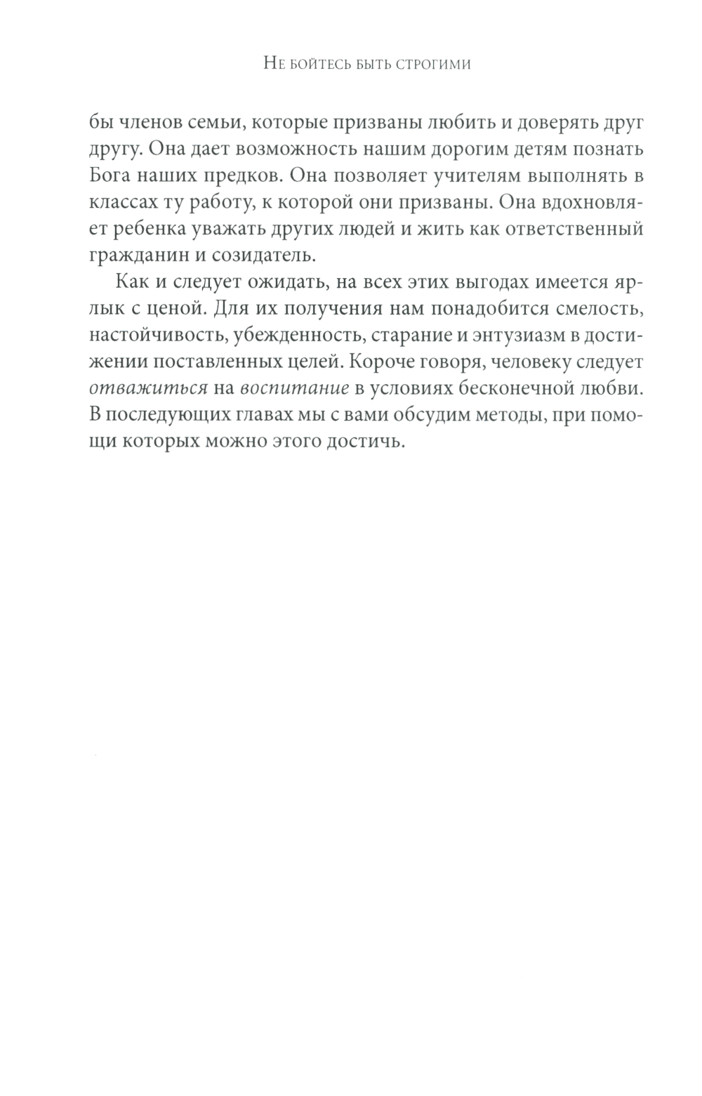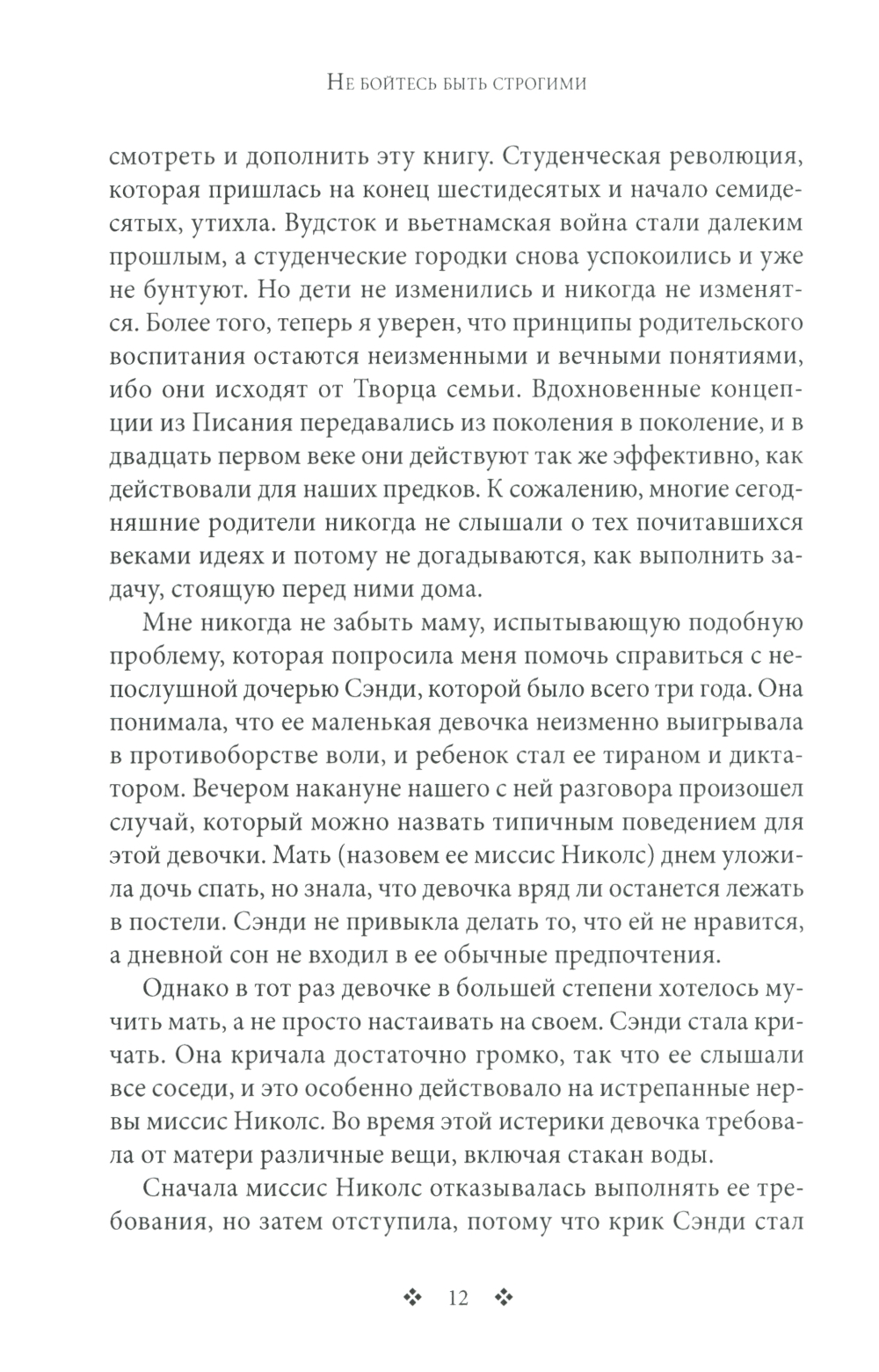 Многие сегодняшние родители выросли, не видя перед собой ролевой модели. У них нет четкого понимания того, что значит быть хорошей матерью или отцом. Одни пострадали от разного рода насилия в детстве, других либо не воспитывали, либо ни в чем не ограничивали. Как теперь им воспитывать своих сыновей и дочерей с пониманием и уверенностью? Разные «эксперты» часто давали неверные, противоречивые или неработающие советы. Куда можно обратиться современному поколению родителей за надежным и разумным руководством в деле воспитания детей? Доктор Джеймс Добсон в книге «Не бойтесь быть строгими» предоставил нам исключительно практичный и убедительный источник информации для современных отцов и матерей. Это пересмотренное и дополненное издание прежней, ставшей классической работы, которая более двух десятков лет назад помогла миллионам родителей выполнить это трудное дело. В этой новой книге доктор Добсон предлагает не только советы по воспитанию мальчиков и девочек. Он подготовил игровой план, целую философию по воспитанию подрастающего поколения. Эта философия поможет родителям понять своих детей и научиться справляться с постоянными задачами и проблемами по мере их возникновения. Подход доктора Добсона к воспитанию детей стоит на твердом основании традиционной иудео-христианской системы ценностей, возникшей две и более тысяч лет назад. Попросту говоря, здоровые и счастливые дети, как правило, вырастают в семьях, где родители нашли золотую середину между любовью и контролем. Но если баланс нарушается в одну или другую сторону, то в жизни детей, судьбы которых вверены в наши руки, возникают проблемы. Как говорит Добсон: «Когда ребенок спрашивает, кто отвечает за ту или иную ситуацию, ответьте ему. Когда он спрашивает, кто любит его, обнимите его и окружите любовью и вниманием. Проявляйте к нему уважение и ждите к себе такого же отношения. И тогда вы начнете радоваться сладким плодам компетентного исполнения родительского долга».| Издательство | ИД Христофор |