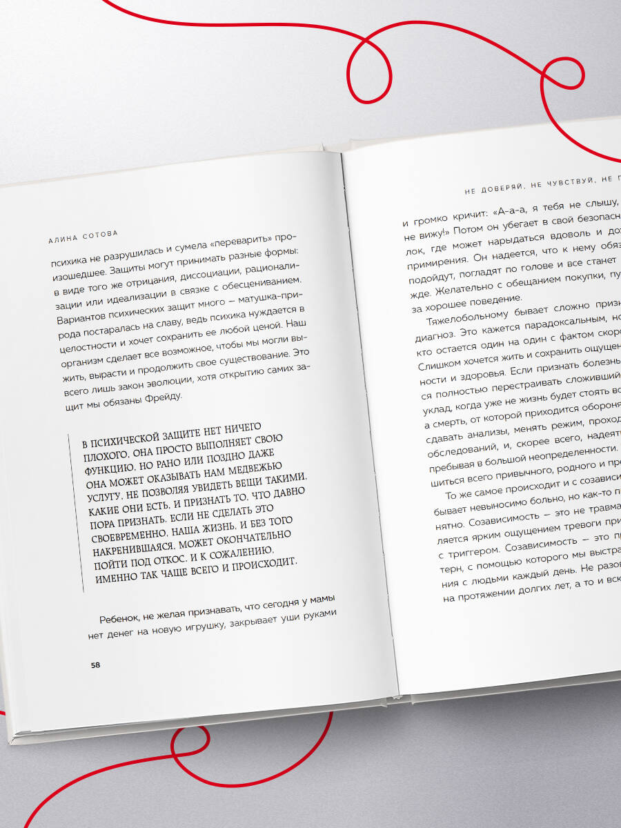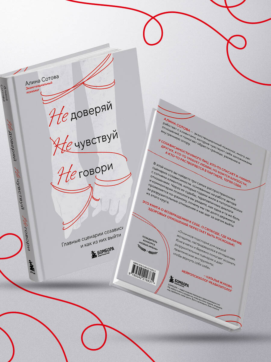 АЛИНА СОТОВА - экзистенциальный психолог, много лет работает с клиентами, которые чувствуют себя «заложниками» отношений, и помогает обрести границы, уважение и внутреннюю опору. У созависимости много лиц. Кто-то спасает и «чинит» других, кто-то требует любви, но боится близости, а кто-то растворяется в партнере, теряя себя. В этой книге вы найдете три самых распространенных сценария созависимости, основанные на работе автора с сотнями клиентов, которые годами жили в патологических отношениях. Через их судьбы, терапевтичные диалоги и комментарии психолога вы увидите, как одна и та же боль проявляется по-разному, почему мы так долго держимся за разрушительные отношения и как шаг за шагом выйти из этого круга. Это книга о возвращении к себе. О свободе, где наличие здоровых отношений перестает быть роскошью. «Отличное подспорье для каждой женщины, настрадавшейся в отношениях. Она мягко и бережно помогает осознать разрушительные сценарии и дает практические инструменты, чтобы вернуть себе себя». - Наталья Жукова, нейропсихолог-реабилитолог, магистр психологических наук| Издательство | ООО "Издательство "Эксмо" |