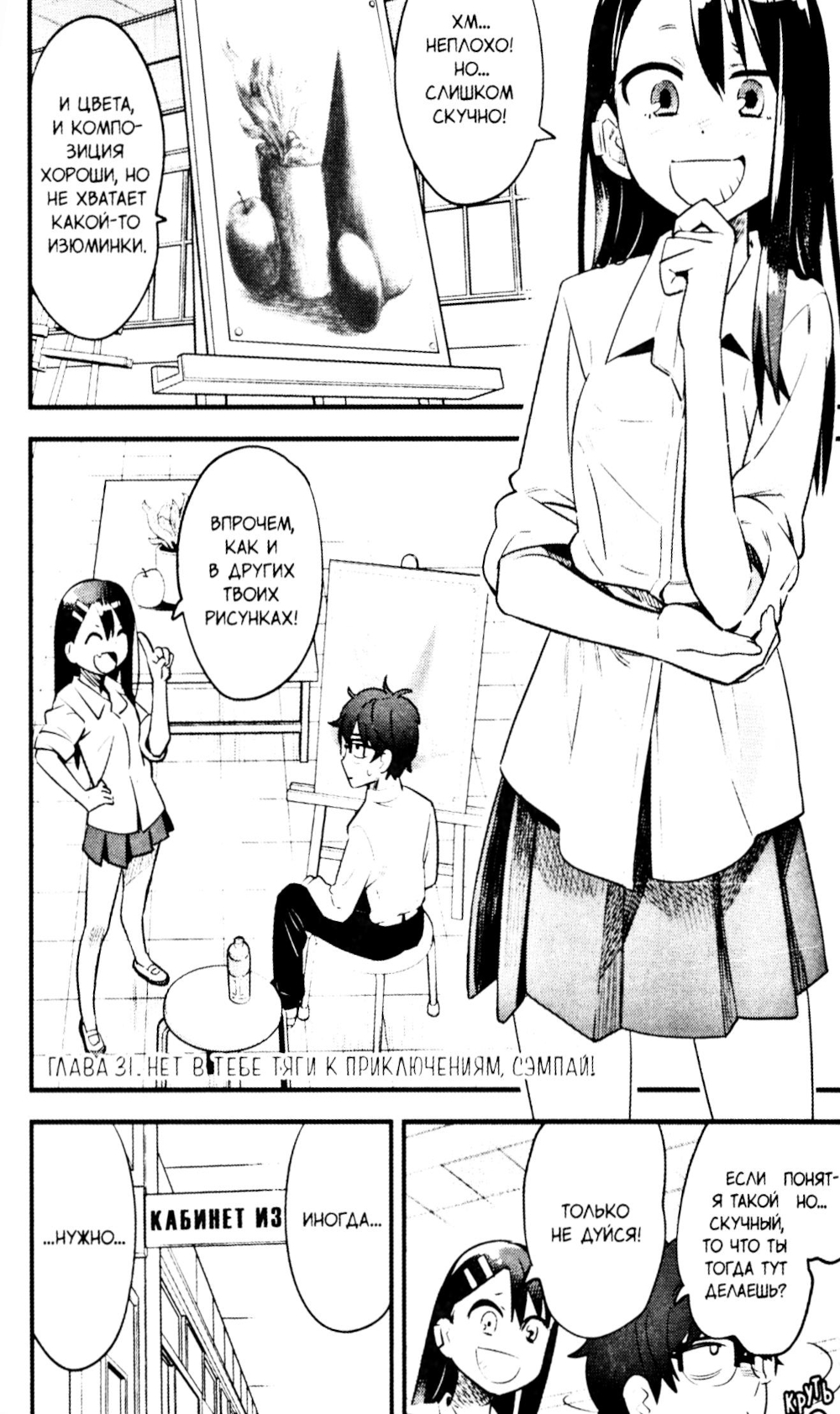 Не успел сэмпай привыкнуть к тому, что Нагаторо с подружками вечно торчит в кабинете кружка рисования, как появляется новая напасть - президент кружка грозится закрыть его навсегда! Все решится на культурном фестивале, где сэмпай и президент представят свои работы на суд зрителей. Но шансов победить так мало... На что готова пойти Нагаторо, чтобы помочь своему сэмпаю выиграть эту дуэль?!| Издательство | ЭксЭл Медиа |