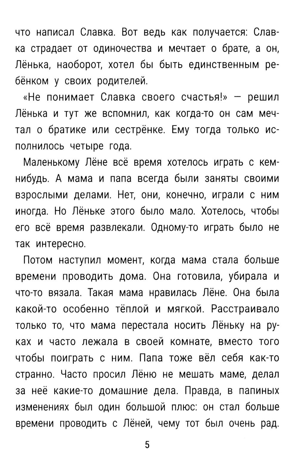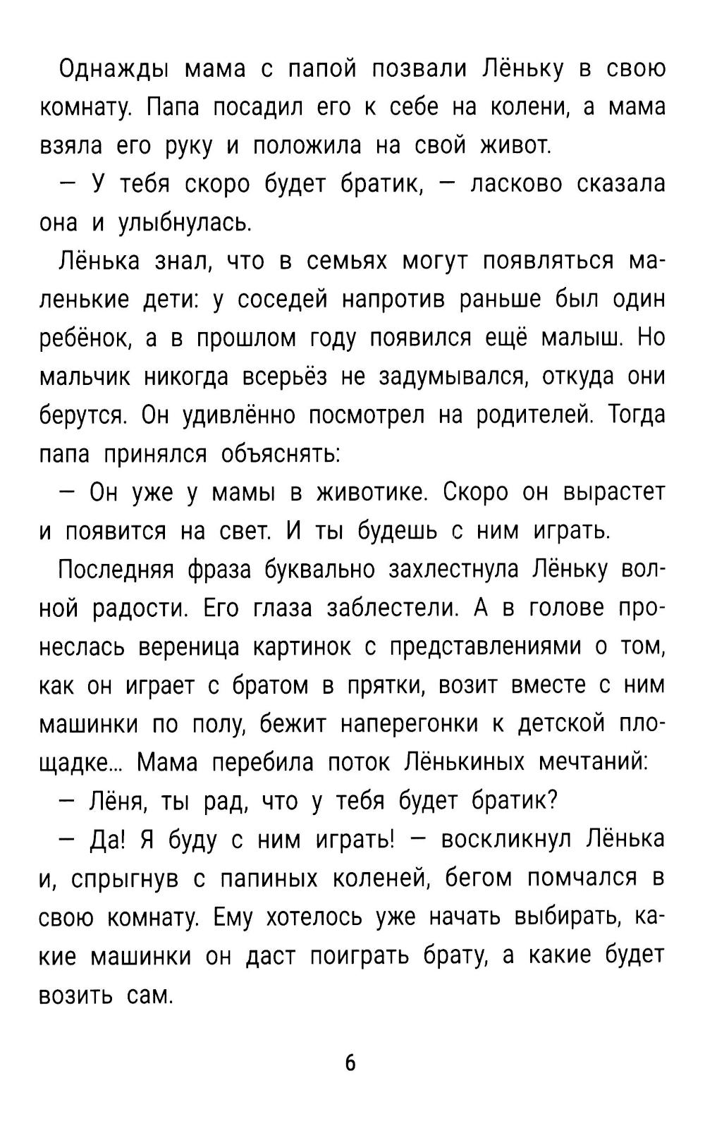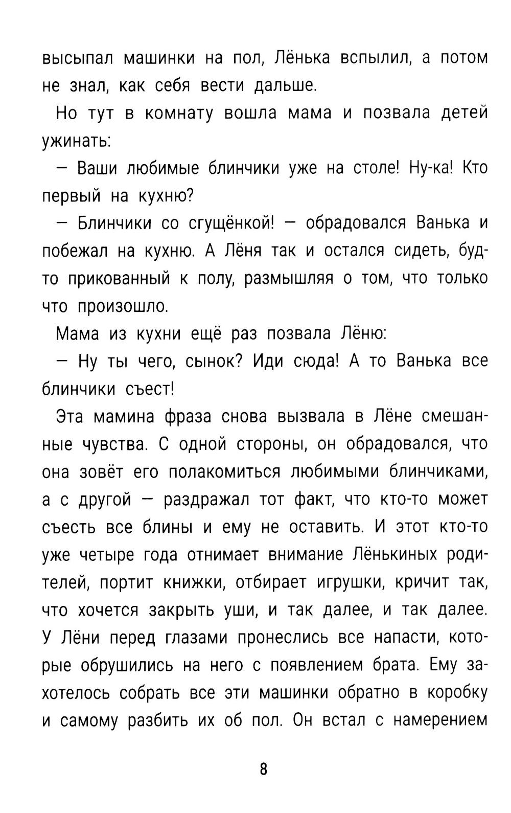 Лёня - обычный мальчик. В его семье случилось, казалось бы, тоже обычное событие - родился младший брат Ваня, но это полностью изменило жизнь. Теперь внимание родителей делится на двоих детей и Лёне приходится узнавать, каково это - быть старшим братом и не единственным сыном. Как делить вкусности и игрушки и обязан ли мальчик это делать? Правда ли, что младшему можно больше, чем старшему? На эти и другие вопросы вы найдёте ответы в увлекательных историях от многодетной мамы и детского психолога Екатерины Шумейко.| Издательство | Феникс |
