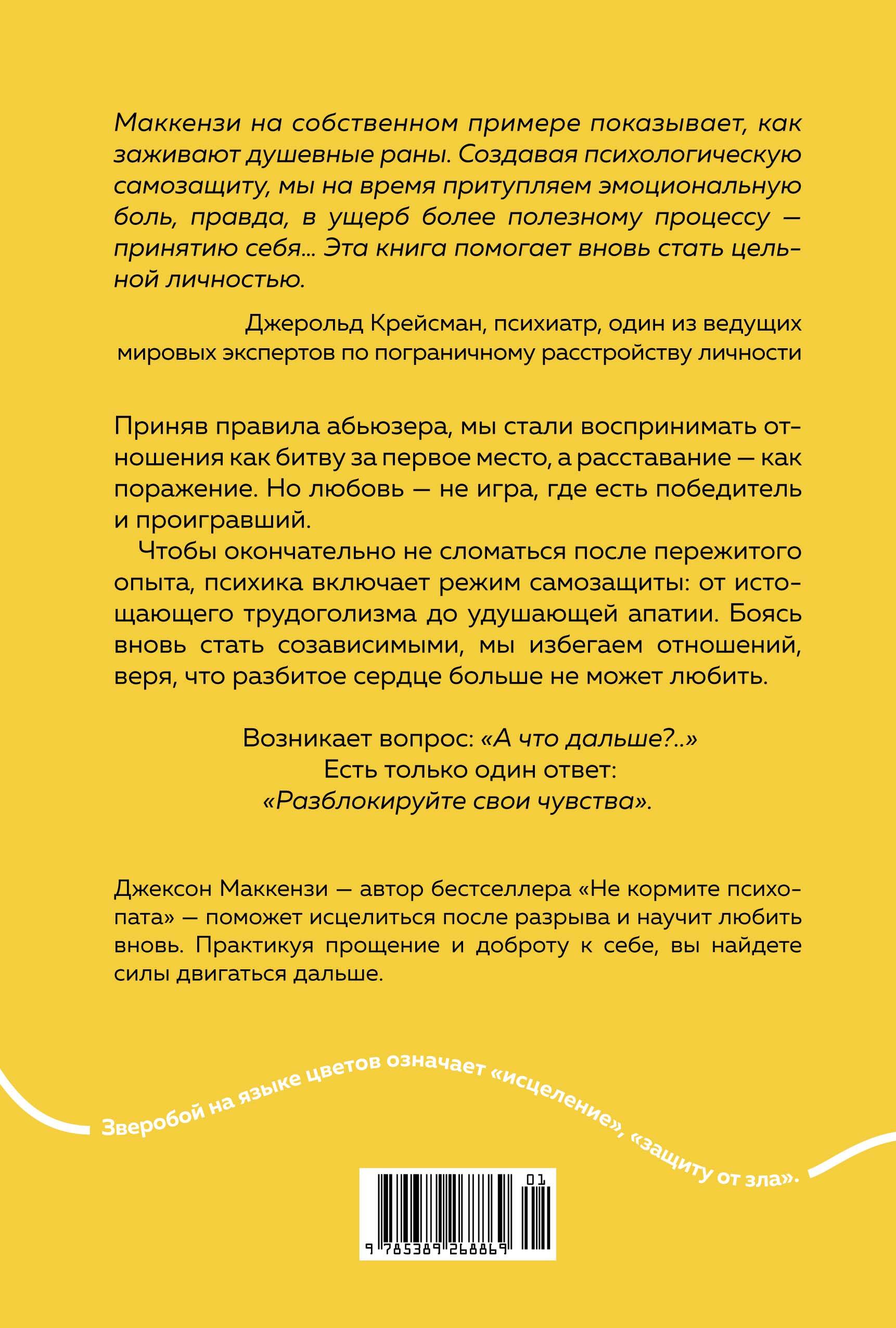 У людей, переживших абьюз, симптомы душевной травмы могут сохраняться долгое время после завершения отношений. Ощущение онемения и пустоты, депрессия, перфекционизм, руминация, чрезмерная забота о людях или желание угождать им, необходимость тотального контроля - этот список, как утверждает автор, можно продолжать бесконечно, и для каждого он будет свой. Пообщавшись с тысячами таких людей, которых он по праву мог назвать своими собратьями по несчастью, Джексон Маккензи пришел к выводу, что человек способен успешно преодолевать эти симптомы. Говоря о созависимости, аддикции, посттравматическом стрессе, а также пограничных, нарциссических и других видах расстройства личности, Маккензи глубоко сопереживает каждому и рассказывает, как научиться прощать и избавляться от ложного стыда. Найденные им методики позволяют работать над созданным нашей психикой защитным "я", чтобы продолжить движение к полной и подлинной жизни, ощутить легкость, свободу, цельность и готовность дарить и получать любовь.| Издательство | Азбука-Аттикус Издат.группа ООО |