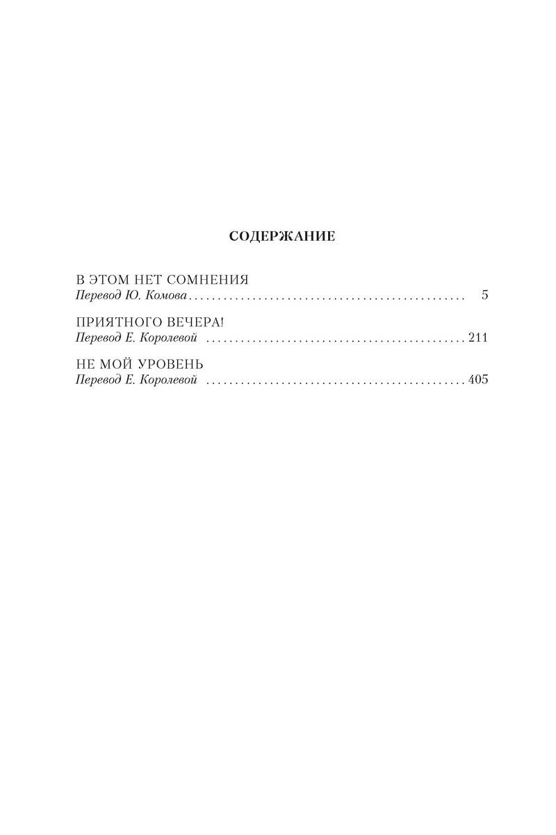 За полвека писательской деятельности британский автор детективов Рене Брабазон Реймонд (1906-1985) опубликовал около девяноста криминальных романов и сменил несколько творческих псевдонимов. Самый прославленный из них - Джеймс Хэдли Чейз. "Я, как ищейка, беру след и чую, чего хочет читатель. И что он купит" - так мэтр объяснял успех своих романов, охотно раскрывая золотоносный секрет: читателей привлекают "действие и ритм". В сборник вошли романы "В этом нет сомнения" (1980), "Приятного вечера" и "Не мой уровень" (1983), относящиеся к циклу "Парадиз-Сити". Актер-неудачник Джерри Стивенс получает необычное предложение: изображать известнейшего миллиардера на время его отсутствия. Однако щедро оплачиваемая работа "двойником" оборачивается настоящим кошмаром... Тяжело ранив неудачливого убийцу, детектив Том Лепски невольно стал причиной столкновения интересов двух преступных групп. На кону большие деньги, ставка - жизнь. Сказочное богатство не принесло счастья Шерману Джеймисону: бездетный брак стал препятствием на пути к его мечте иметь наследника. Развод невозможен, но для решительного человека, настроенного заполучить желаемое любой ценой, нет непреодолимых препятствий.| Издательство | Азбука-Аттикус Издат.группа ООО |