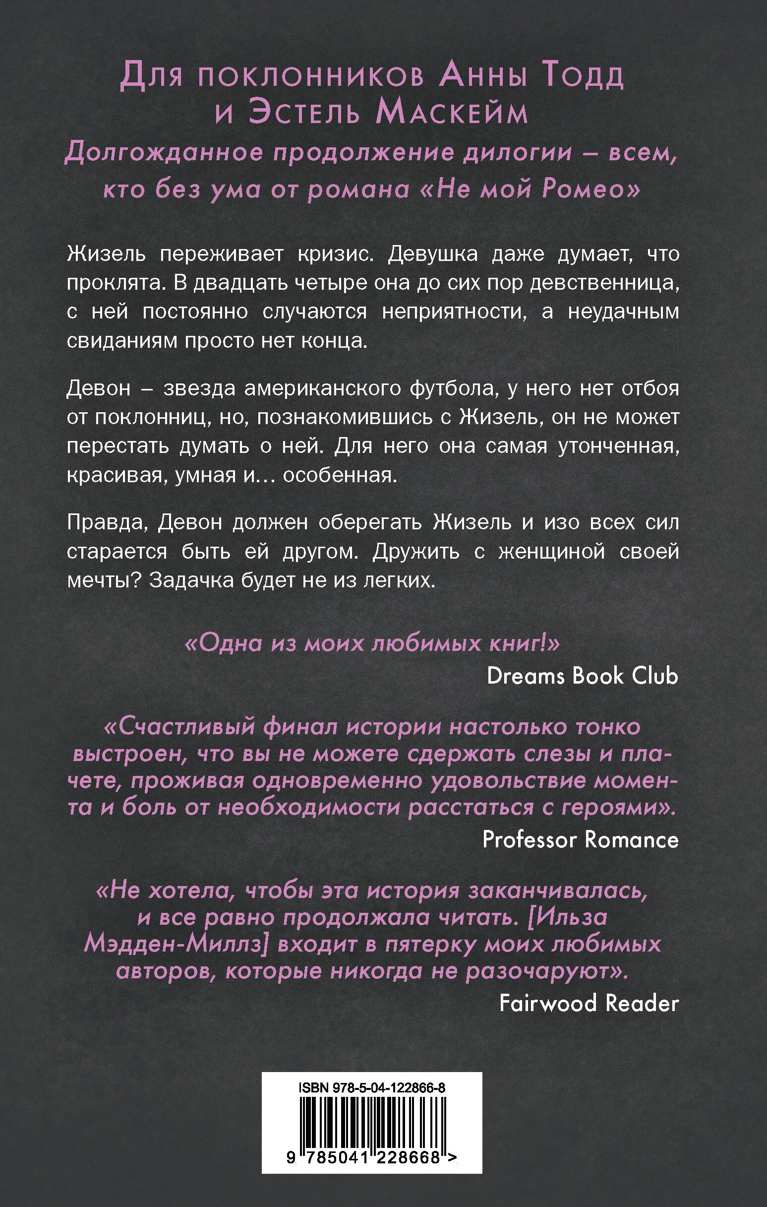 Ильза Мэдден-Миллз - автор бестселлеров Wall Street Journal, New York Times и USA Today. Для поклонников Анны Тодд и Эстель Маскейм Долгожданное продолжение дилогии - всем, кто без ума от романа «Не мой Ромео» Жизель переживает кризис. Девушка даже думает, что проклята. В двадцать четыре она до сих пор девственница, ее съедает чувство вины перед своей сестрой Еленой, с ней постоянно случаются неприятности, а неудачным свиданиям просто нет конца. Девон - звезда американского футбола, у него нет отбоя от поклонниц, но, познакомившись с Жизель, он не может перестать думать о ней. Для него она сама утонченная, красивая, умная и… особенная. Правда, Девону наказано оберегать Жизель и быть ей другом. Дружить с женщиной своей мечты? Задачка будет не из легких. «Теперь это одна из моих любимых книг!» - Dreams Book Club «Финал истории настолько хорошо выстроен, что вы не сможете сдержать слезы как от счастья, так и от осознания, что пришла пора расстаться с полюбившимися персонажами…» - Professor Romance «Мне не хотелось, чтобы эта история заканчивалась, и все же я не могла оторваться. Ильза Мэдден-Миллз входит в пятерку моих любимых авторов, которые никогда не разочаровывают». - Fairwood Reader| Издательство | Эксмо |