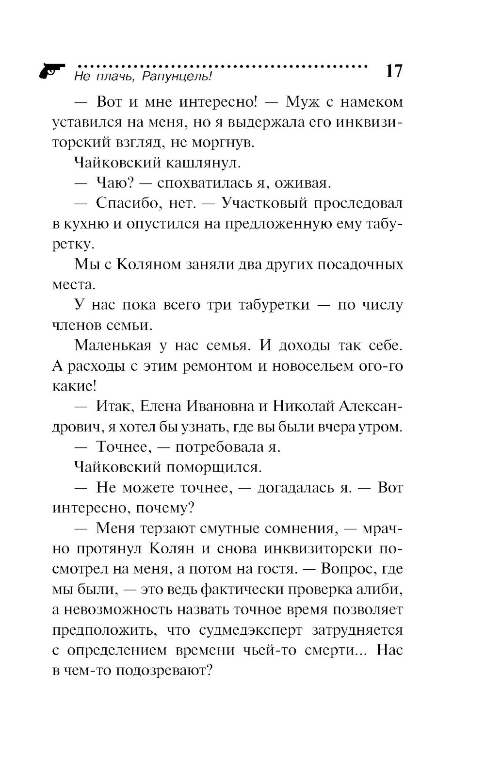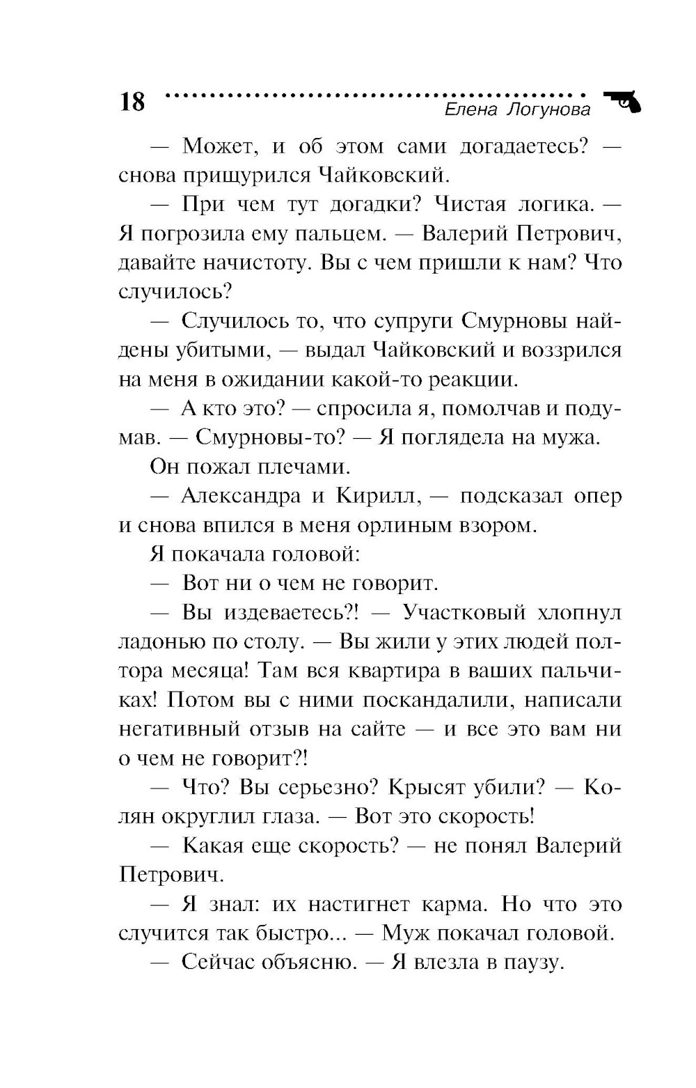 Писательница Елена с мужем и сыном въезжает в новую квартиру, расположенную в пригороде Петербурга. Вокруг все делают ремонт, создавая много шума и мешая творить, но это сущая ерунда по сравнению с долгожданным новосельем! Однако счастье оказывается омрачено визитом участкового. Он интересуется Смурновыми - хозяевами квартиры, которую Лена с семьей снимала до переезда. У них возник конфликт, а недавно Смурновых обнаружили убитыми! Их тела нашел новый жилец Вадик Архипов, который тоже оказался под подозрением. А когда к Лене приехала ее закадычная подруга Ирка, они втроем с энтузиазмом взялись за собственное расследование!| Издательство | Эксмо |