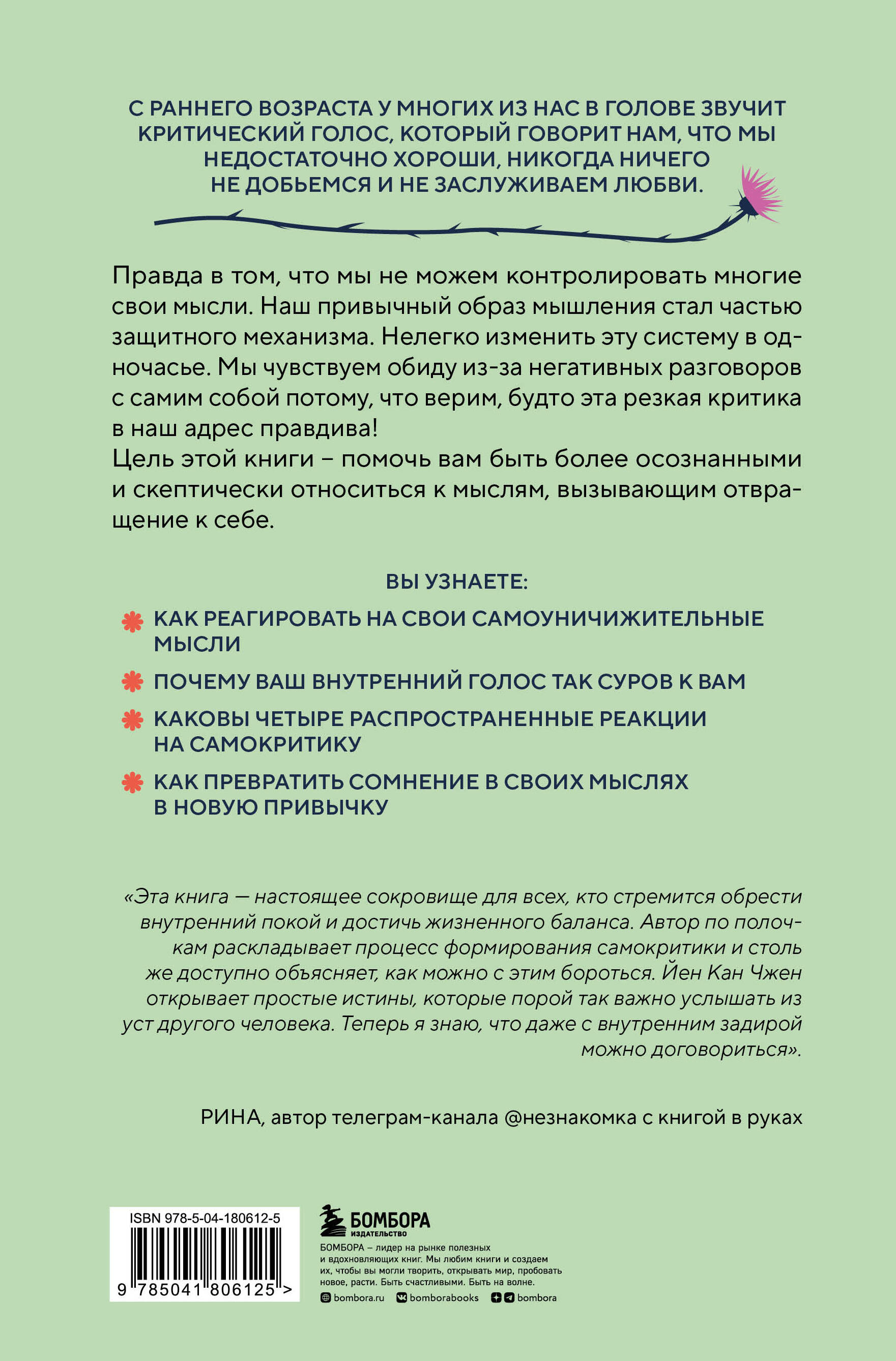 С раннего возраста у многих из нас в голове звучит этот противный голос, который мы называем внутренним критиком. Есть много различных упражнений и техник, чтобы избавиться от этого, но ничего не работает. Эти навязчивые мысли продолжают появляться всякий раз, когда им заблагорассудится. Вместо того чтобы преодолеть самоосуждение, мы в конечном итоге превращаем внутреннего критика в нашего врага и виним себя за такие мысли, вызывающие отвращение к себе. Вместо того чтобы фиксировать свои мысли и сопротивляться им, мы можем изменить наши бессознательные реакции на эти суждения. Привычка не верить (самому себе) подсказывает вам, как практиковать осознанность и примириться со своим разумом. Просто попробуйте - это изменит вашу жизнь. Из этой книги вы узнаете: - Как заметить свою бессознательную реакцию. - Почему вы не должны воспринимать свои мысли слишком серьезно. - Как реагировать на свои критические мысли. - Почему ваш внутренний голос так критичен и суров к вам. - Каковы четыре распространенные реакции на самокритику. - Как превратить сомнение в своих мыслях в новую привычку.| Издательство | ООО "Издательство "Эксмо" |