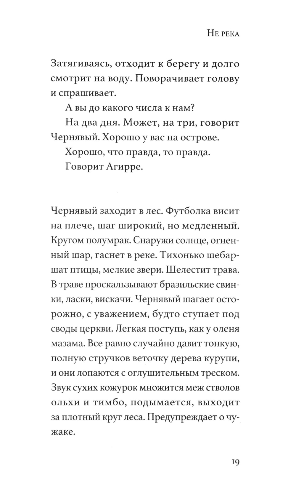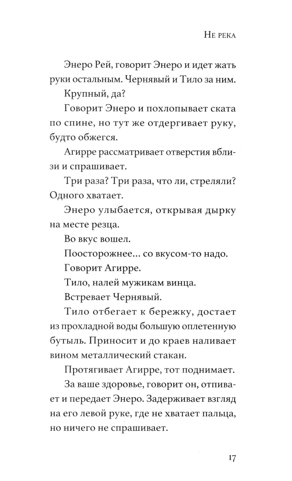 Энеро и Негро вместе с сыном их давно погибшего друга отправляются рыбачить на остров. Они ловят ската, пьют, разговаривают, в то время как река живет своей непредсказуемой жизнью, влияя на все вокруг, ломая судьбы людей. Или, может быть, это не река, а слепое, таинственное провидение? Сон смешивается с реальностью, призраки прошлого бродят по острову. Пронзительная, насыщенная событиями история превращается в высказывание о природе насилия, о нежности и привязанности между людьми.