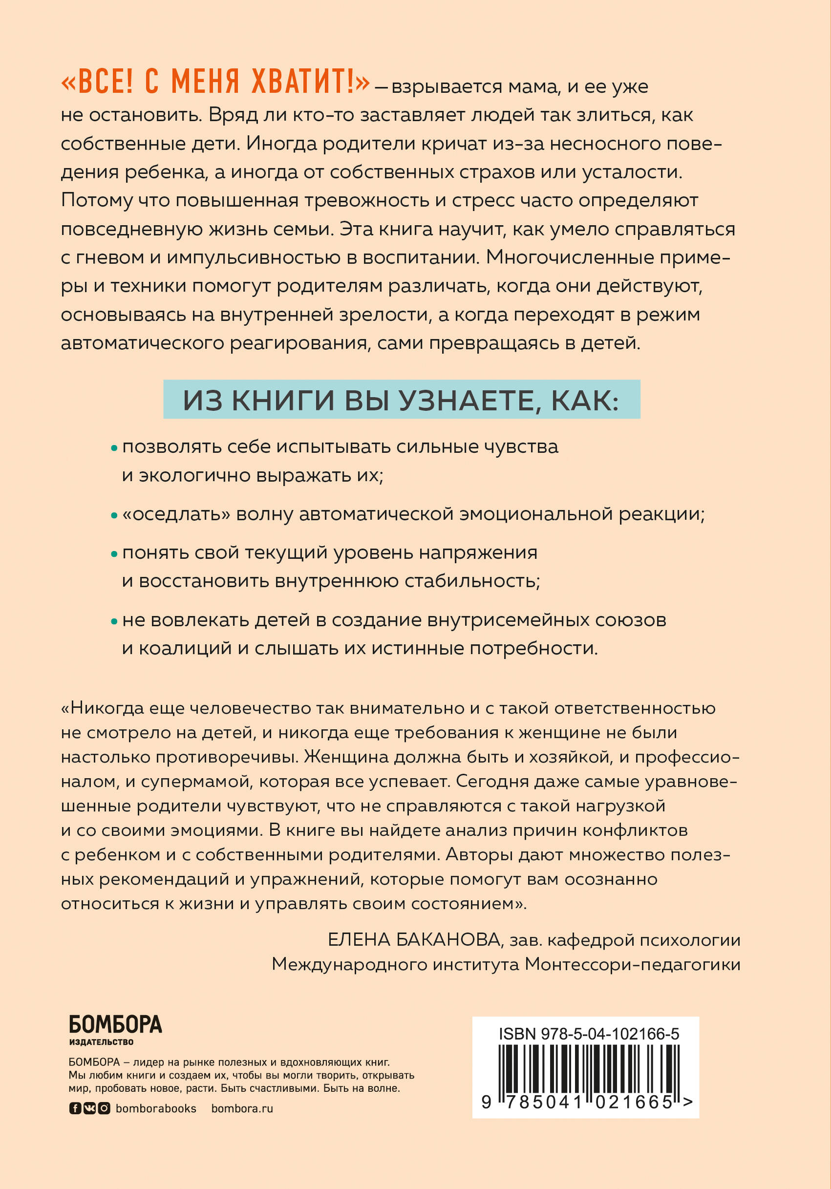 Автор самого успешного родительского блога в Германии и Австрии и практикующий семейный консультант создали книгу для мам, которая детально описывает, что происходит, когда сильные эмоции захватывают их. Как справиться с яростью и гневом, когда ребенок закатывает истерику? Когда взять паузу, перевести дух и быстро восстановить свою эмоциональную устойчивость? Как избавить себя от ежедневного стресса: будь то страх за ребенка или очень сильная бытовая нагрузка. Благодаря этой книге вы научитесь слышать свои потребности, заботиться о себе и дарить ребенку любовь и понимание даже тогда, когда устали.| Издательство | ООО "Издательство "Эксмо" |