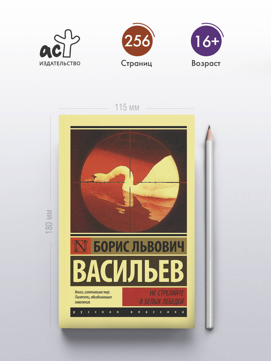 Проза Бориса Васильева очень кинематографична, не случайно многие его произведения экранизированы. В том числе и роман "Не стреляйте в белых лебедей". Кинематографичной прозу Васильева делает, в первую очередь, увлекательный сюжет или, как принято теперь говорить, экшен. Экшен, помноженный на мелодраматичность, - вот залог успеха любого фильма по произведениям Васильева. Но все-таки главное, наверное, достоинство этой прозы - умение показать благородство обычного человека, его значимость, найти в самом рядовом, казалось, плотнике большую душу, ранимое сердце, стремление к правде и справедливости. Судьба не всегда бывает справедлива к таким людям: их легко обмануть, они часто становятся объектом насмешек и непонимания окружающих.| Издательство | ИЗДАТЕЛЬСТВО "АСТ" |