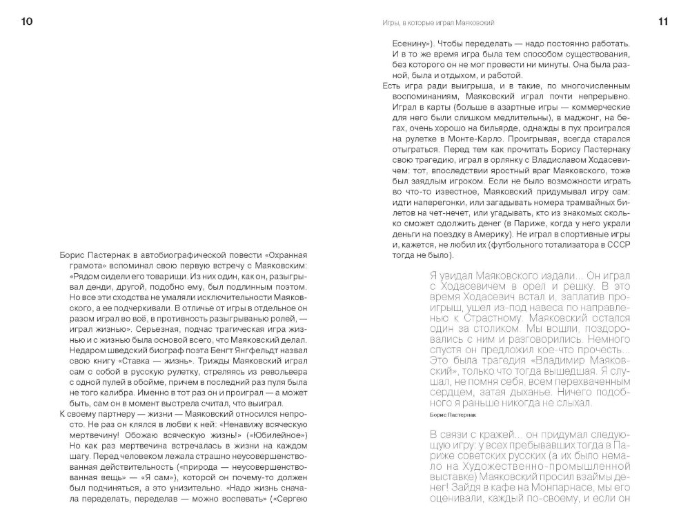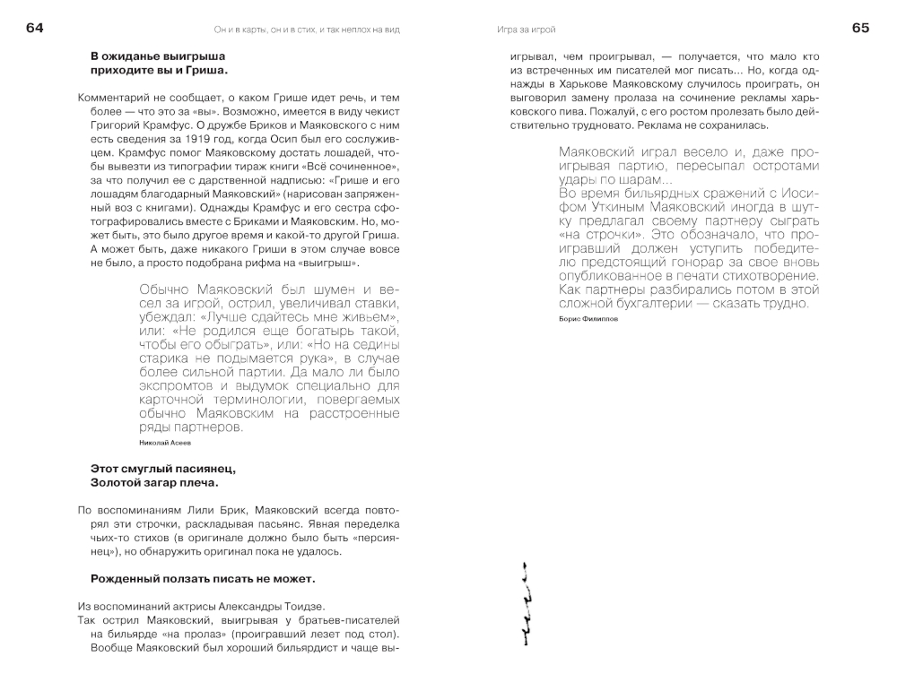 Игра была основой всего, что делал Маяковский, - по выражению Б. Л. Пастернака, он «разом играл во всё... играл жизнью». Это проявлялось и в знаменитой любви поэта к азартным играм (как общеизвестным, так и выдуманным им самим), и в смене образов-масок, которые надевал его лирический герой. Но самой важной игрой для Маяковского была игра со словом, отразившаяся в многочисленных экспромтах, дарственных надписях, ответах на вопросы публики во время выступлений, зафиксированных в записных книжках поэта, а также в дневниках и воспоминаниях его современников. Как известно, экспромт находится на пересечении сфер литературного быта и профессиональной литературы. Эта особенность позволяет жанру быть творческой лабораторией поэта, в которой писатель пробует несвойственные ему темы. Экспромты и дарственные надписи Маяковского в этой книге представлены как самостоятельный вид его творчества, выражающий стихию игры, свободное проявление творческого духа не только в созданных им произведениях искусства, но и в самой жизни. Важнейшей частью книги являются «графические экспромты» Маяковского, в том числе из его записных книжек: автошаржи, зооморфные автопортреты и подписи к ним. В книгу также вошли брошюра Маяковского «Как делать стихи» и его избранные стихотворения о поэзии. Издание подготовлено к 130-летию со дня рождения поэта.| Издательство | Лингвистика |