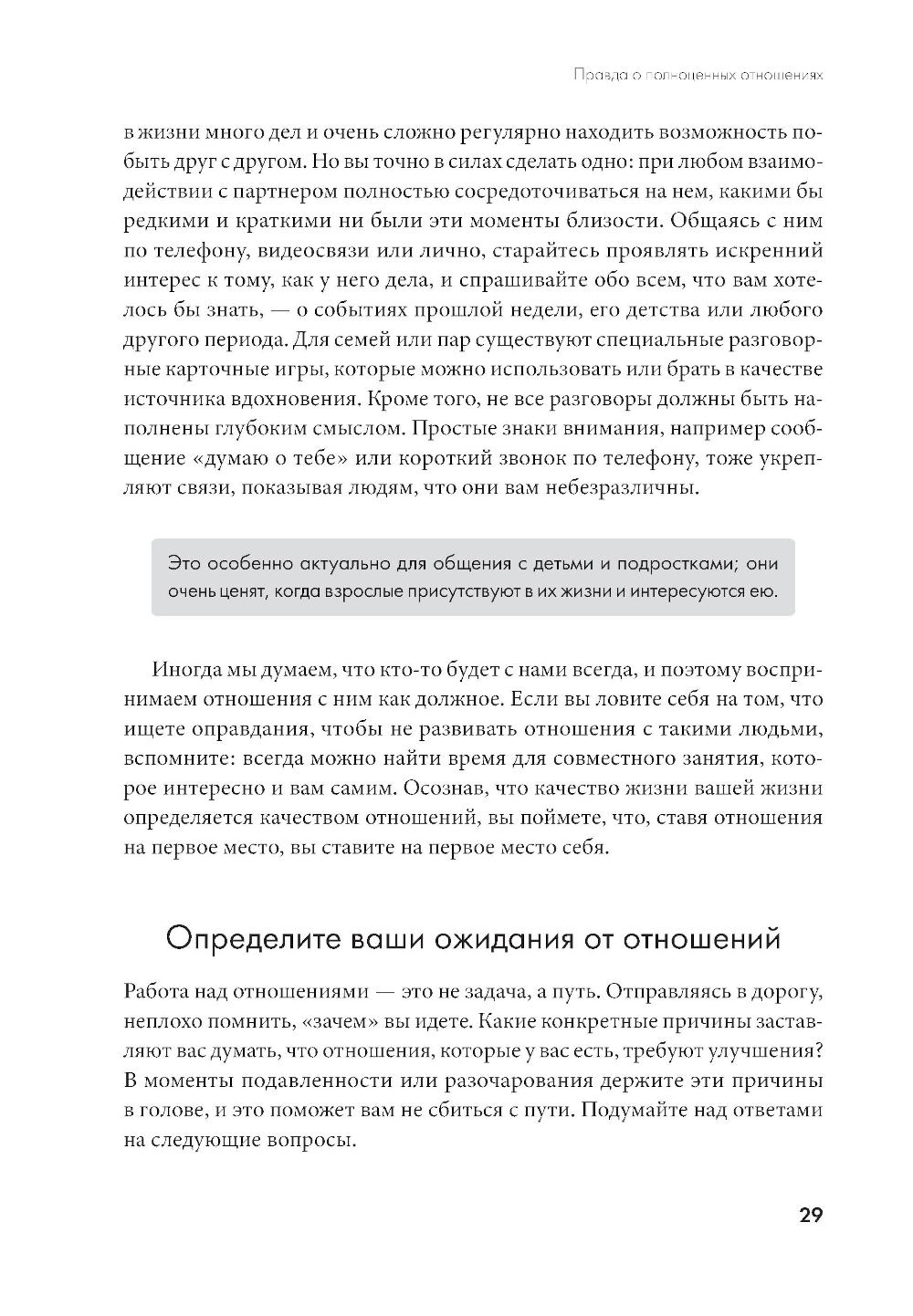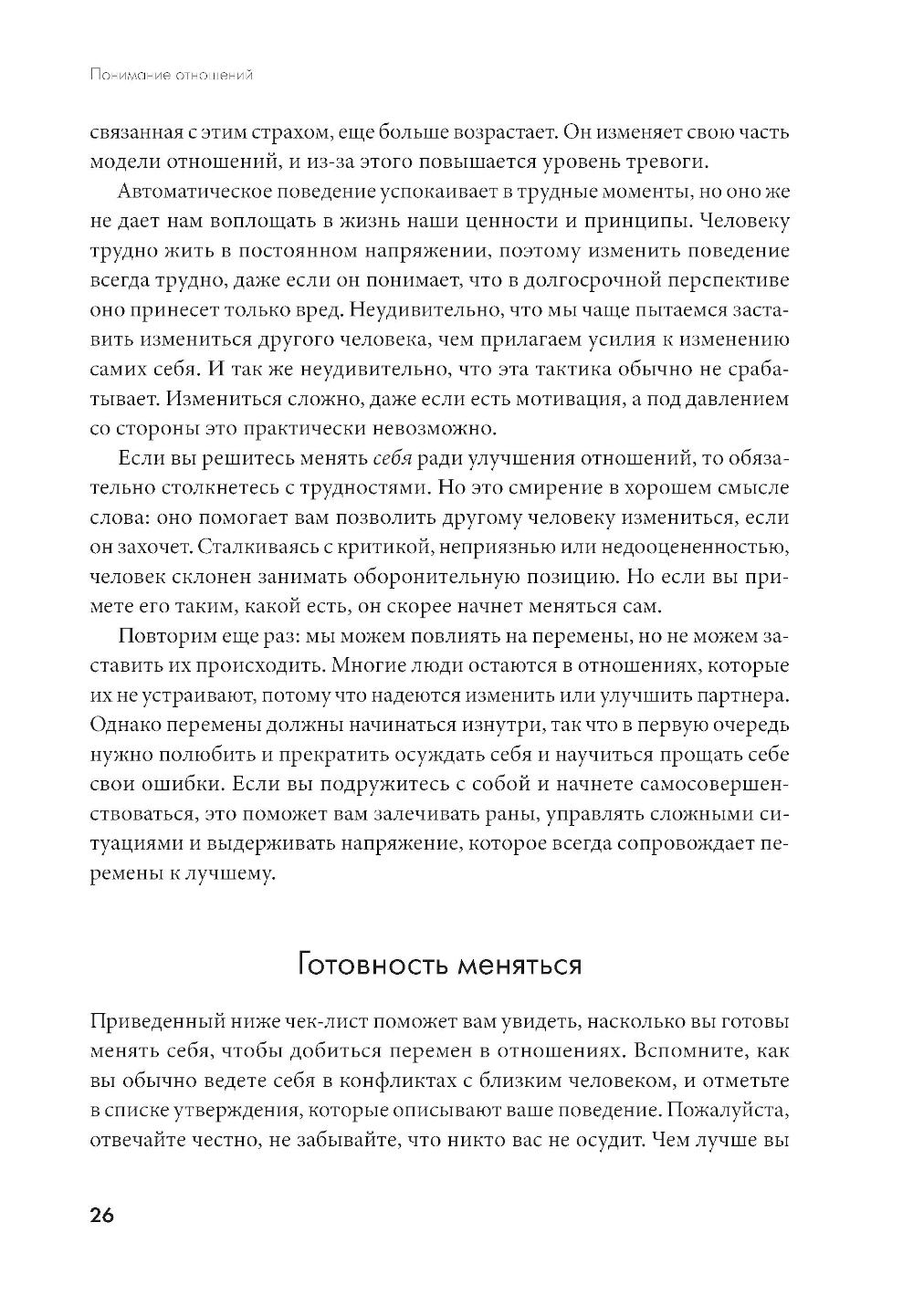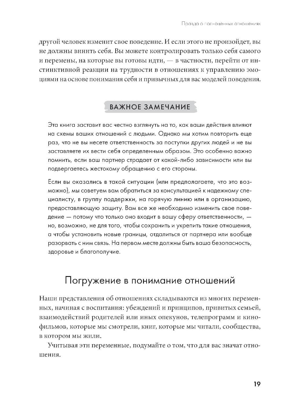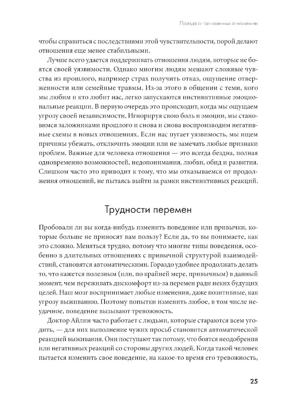 Книга психотерапевтов Айлин Коэн и Эдрики Ричардсон - это руководство по построению здоровых отношений с людьми и с самим собой. Опираясь на научные данные и результаты социологических исследований, иллюстрируя свои выводы живыми примерами из практики, авторы изучают природу отношений между людьми, объясняют, почему крепкие связи с окружающими важны для каждого человека, и анализируют шесть этапов движения к полноценным отношениям. В книге много доступных каждому упражнений, выполняя которые, вы поработаете с семейной историей, узнаете, какова роль самоопределения в отношениях, что такое треугольники и чем полезна уязвимость, научитесь эффективной коммуникации и освоите навык самоанализа. Все это поможет вам, развиваясь и совершенствуя себя, улучшить отношения с людьми.