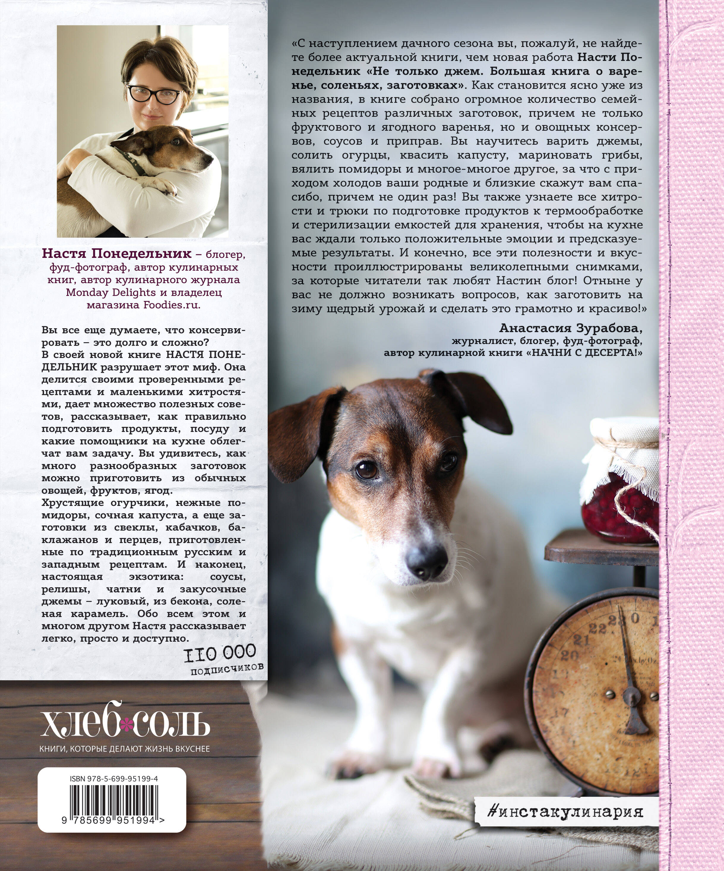 Настя Понедельник - блогер, фуд-фотограф, автор кулинарных книг, автор кулинарного журнала «Monday Delights». «С наступлением дачного сезона вы, пожалуй, не найдете более актуальной книги, чем новая работа Насти Понедельник "Не только джем. Большая книга о варенье, соленьях, заготовках". Как становится ясно уже из названия, в книге собрано огромное количество семейных рецептов различных заготовок, причем не только фруктового и ягодного варенья, но и овощных консервов, соусов и приправ. Вы научитесь варить джемы, солить огурцы, квасить капусту, мариновать грибы, вялить помидоры и многое-многое другое, за что с приходом холодов ваши родные и близкие скажут вам спасибо, причем не один раз! Вы также узнаете все хитрости и трюки по подготовке продуктов к термообработке и стерилизации емкостей для хранения, чтобы на кухне вас ждали только положительные эмоции и предсказуемые результаты. И, конечно, все эти полезности и вкусности проиллюстрированы великолепными снимками, за которые читатели так любят Настин блог! Отныне у вас не должно возникать вопросов, как заготовить на зиму щедрый урожай и сделать это грамотно и красиво!» Анастасия Зурабова, журналист, блогер, фуд-фотограф, автор кулинарной книги «Начни с десерта!»| Издательство | ООО "Издательство "Эксмо" |