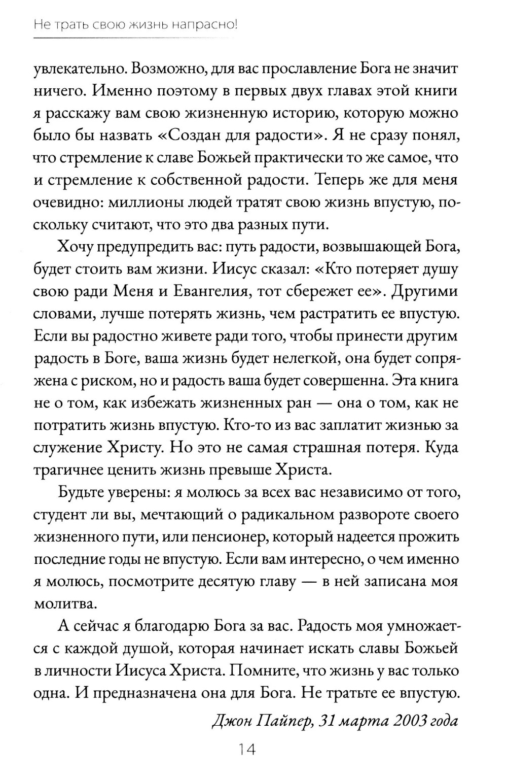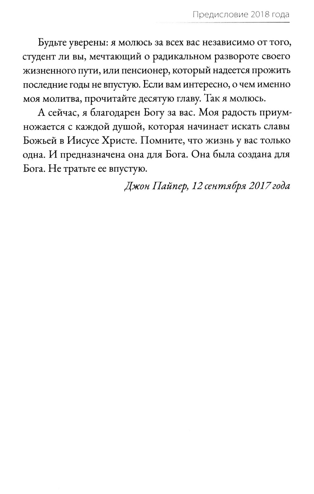 Люди этого мира мечтают о максимальном комфорте и тратят свою жизнь на достижение успеха и получение удовольствия. Но Бог сотворил человека для гораздо большего. В своей самой известной книге Джон Пайпер призывает следующее поколение христиан не тратить свою жизнь напрасно, но рисковать и жертвовать ей в свете вечности - с единственной наполняющей сердце страстью по Божьей славе. Да возвеличим мы Господа Христа во всех сферах нашей жизни!| Издательство | Благая весть |