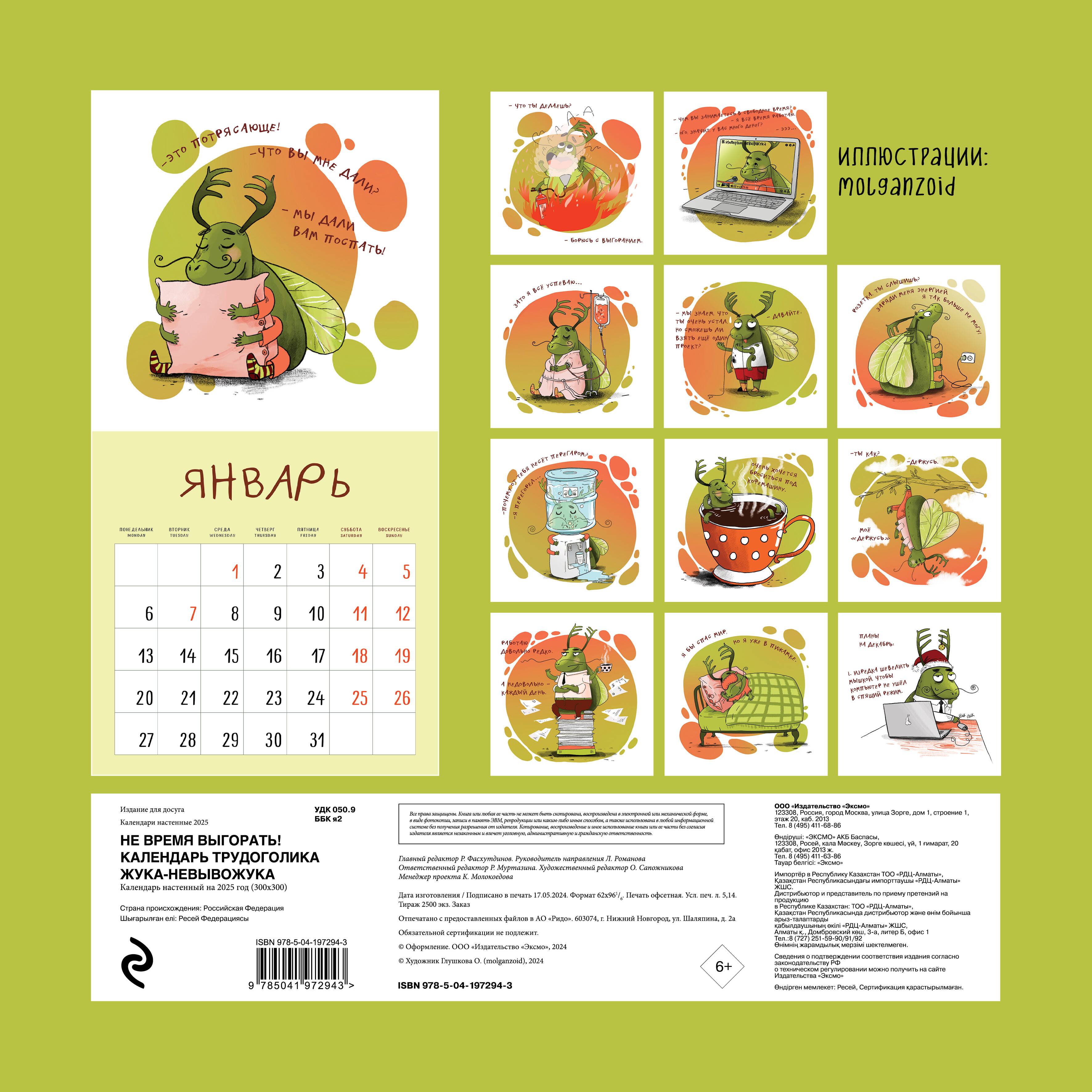 Аннотация: Не время выгорать! Календарь трудоголика жука-невывожука. Календарь настенный на 2025 год (300х300)