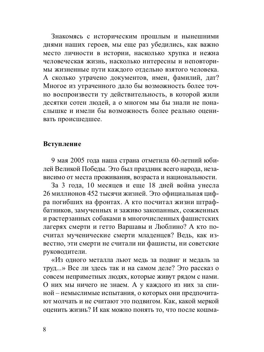 Герои этой книги прошли через самые страшные испытания Второй мировой войны - концлагеря и советские фильтрационные зоны, гетто Польши и трудовой фронт в далекой Сибири. На основе воспоминаний участников тех событий просто и без прикрас повествуется о мужестве и героизме. Эти исповеди «маленьких людей» до мороза по коже и комка в горле кричат нам о том, что об этой войне нужно помнить, передавать из поколения в поколение память о погибших, о тех, кто ценой своей жизни позволил нам жить.| Издательство | Т8 RUGRAM |