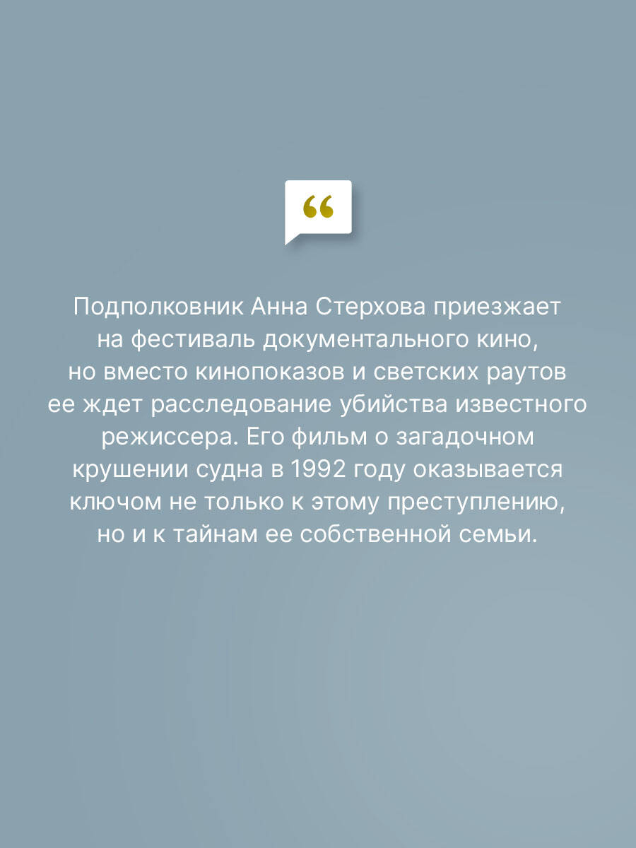 Анна Стерхова получает неожиданное приглашение на фестиваль документального кино «Тихоокеанские хроники». Что ждет ее на далеком побережье? Отдых? Новые знакомства? Или нечто большее, чем просто работа в жюри? Встреча с Румико, журналисткой из Владивостока, запускает цепочку событий, которые переворачивают жизнь Анны. Убийство режиссера Воронина становится ключом к разгадке тайны, связанной с исчезновением океанографического судна и гибелью неизвестного мужчины тридцать лет назад. В атмосфере подозрений и страха Анна распутывает клубок лжи, предательства и давно забытых секретов… В остросюжетных романах Анны Князевой расследуются преступления, следы которых уводят в прошлое и позволяют пролить свет на его загадки. Вслед за героями вы отправитесь навстречу старинным тайнам и увлекательным приключениям!| Издательство | ООО "Издательство "Эксмо" |