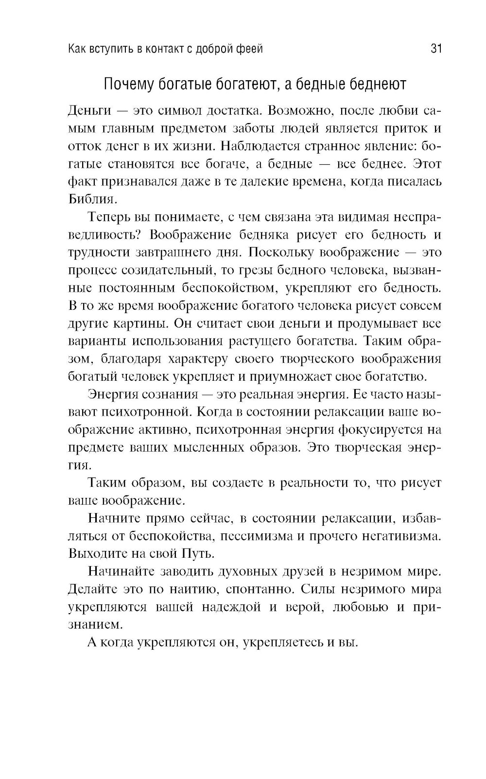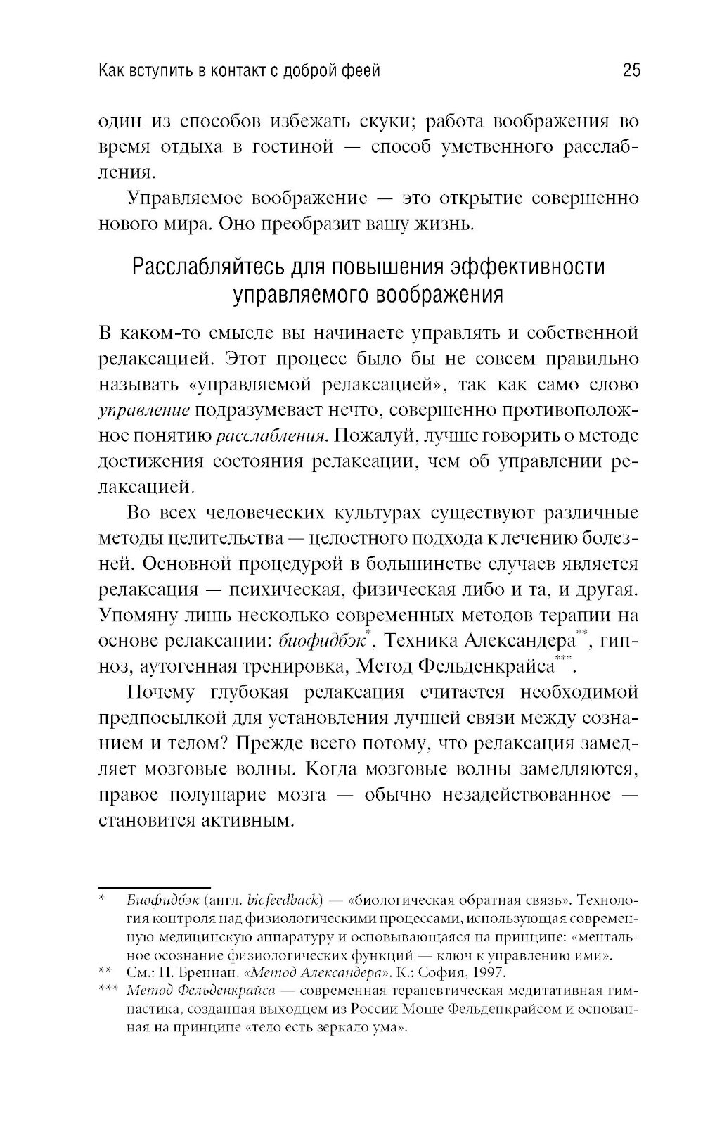 В детстве все любят сказки. И веpят в них. Когда же люди становятся взрослыми, они начинают относиться к ним по-дpугому. Считается, что в «реальном», или «материальном», мире для сказок нет места, а от миpа фантазии взpослому человеку - какая польза? Но не так давно ученые обнаружили, что «фантазирование» в расслабленном состоянии активизирует правое полушарие мозга - источник творчества и гениальных решений. Основываясь на этих наблюдениях, Роберт Стоун - доктор наук, автор 18 книг и соавтор более 80 книг о самопомощи и рациональном использовании интеллекта, представляет миру «метод управления сознанием» Хосе Сильвы. Среди последователей Метода Сильвы - Ричард Бах, Шакти Гавэйн, Уэйн Дайер, менеджеры крупнейших корпораций. Эта «Небесная Служба 911» ежеминутно помогает тысячам людей во всем мире. Роберт Стоун, представляет этот метод в очень простой и увлекательной форме - как регулярные походы в Волшебный Город, символизирующий правое полушарие вашего мозга... Эта техника - не простое фантазирование, она дает возможность установить контакт с другой, незримой реальностью, с энергией творения, в которой и вы, и я - сотворцы. С ее помощью вы можете: • Получить столько материальных благ, сколько вам нужно • Увеличить свою привлекательность для других людей • Ежедневно пожинать плоды удачи • Вернуть себе здоровье и даже «отложить» старение • Защититься от тех, кто желает вам зла • Достичь общественного и делового успеха • Влиять на события на расстоянии| Издательство | София |