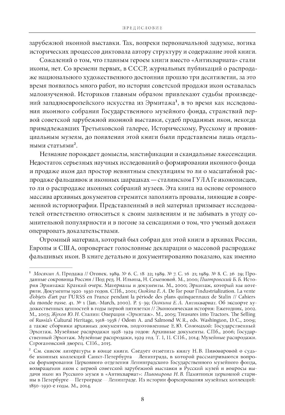 Книга Елены Осокиной - это, без преувеличения, интеллектуальный детектив. Русская икона является главным героем этой книги - центром притяжения действий власти, музейных работников, торговцев и покупателей. Один из парадоксов советской истории состоит в том, что создатели «нерыночной» плановой экономики стали основателями мирового рынка русских икон. На рубеже 1920-1930 х годов их усилиями был собран колоссальный экспортный иконный фонд, организована грандиозная рекламная кампания - первая советская зарубежная иконная выставка, которая во всем великолепии представила миру новый антикварный товар, а также установлены связи с мировыми антикварами и проведены первые продажи коллекций икон за рубеж. Поиск валюты для индустриализации обернулся развитием мирового интереса к русской иконе. Книга рассказывает об истории музеев и людей (к одним из них судьба отнеслась благосклонно, к другим - безжалостно), о том, как было создано и ликвидировано грандиозное иконное собрание Государственного музейного фонда, кто и как отбирал иконы на экспорт, сколько икон отдали на продажу российские музеи (Третьяковка, Исторический, Русский...), были ли проданные иконы фальшивками и существовал ли «сталинский гулаг иконописцев», а также о том, как пытались продать иконную выставку в США, и о судьбе, которая ждала иконы после продажи. Книга написана на огромном материале, собранном автором в архивах России, Европы и США.| Издательство | Новое литературное обозрение |