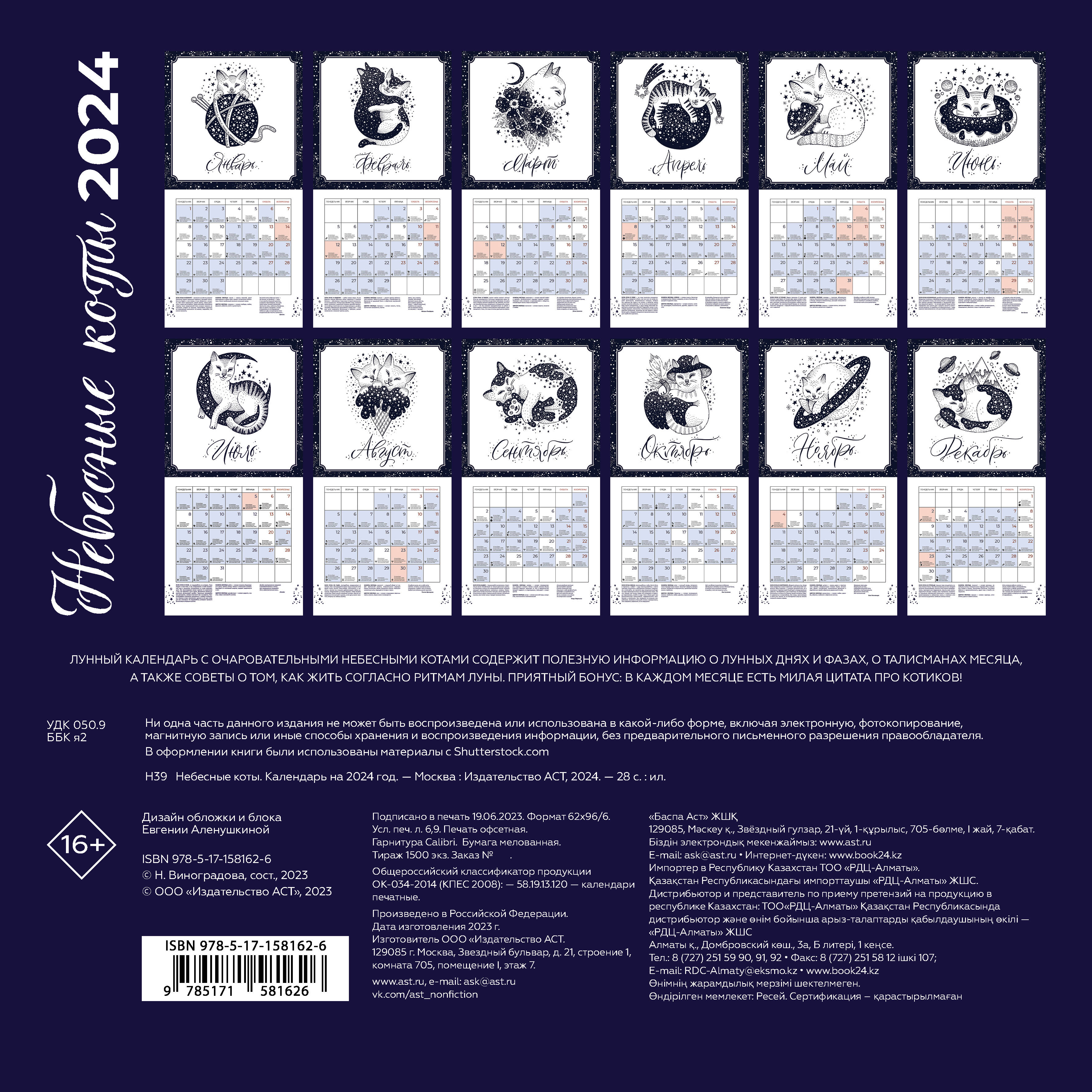 Лунный календарь с очаровательными небесными котами содержит полезную информацию о лунных днях и фазах, о талисманах месяца, а также советы о том, как жить согласно ритмам Луны. Приятный бонус: в каждом месяце есть милая цитата про котиков!| Издательство | ИЗДАТЕЛЬСТВО "АСТ" |