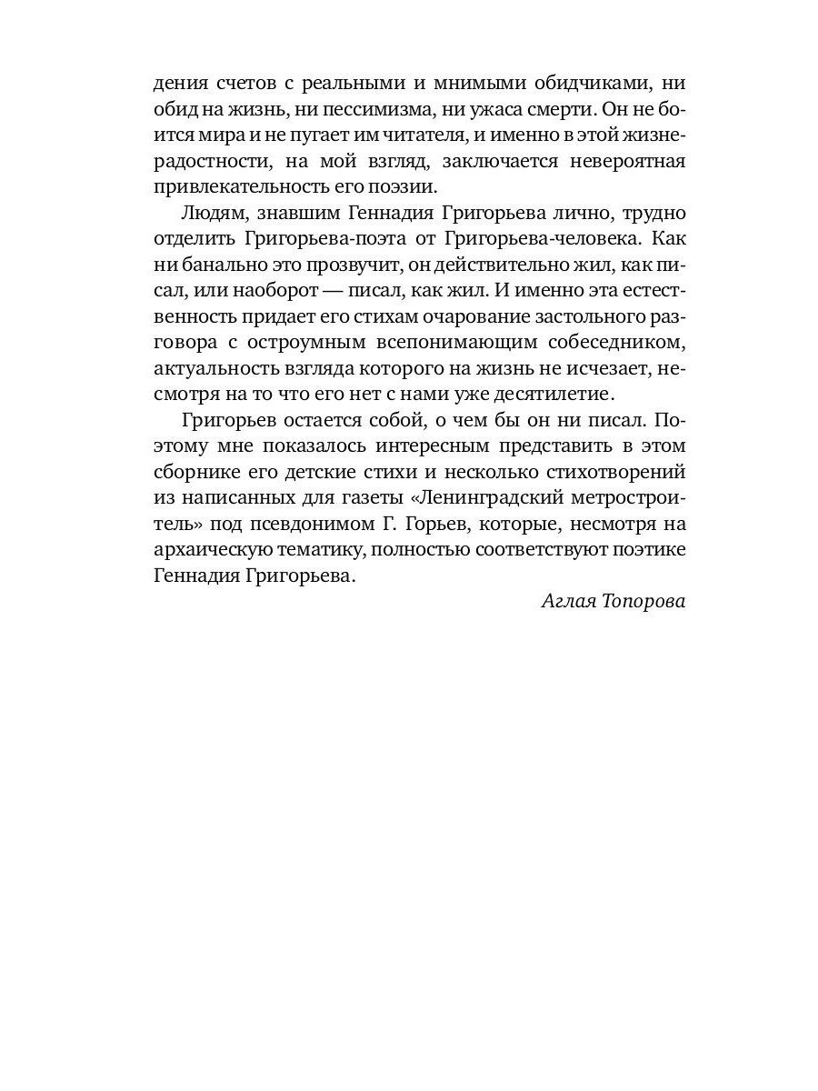 В эту книгу вошли стихотворения и поэмы, пожалуй, самого яркого и популярного поэта 1980-х и 1990-х годов Геннадия Григорьева (1950-2007). Многие строки из его произведений стали настоящими хитами времен Перестройки. Более радостных людей я вообще не встречал. Его радовало абсолютно все. Все могло быть источником для вдохновения. Он из ничего мог сделать что-то изящное. Он жил, по сути, в бочке, как Диоген. Сергей Носов Гена Григорьев, в некотором смысле, последний поэт. Последний человек, стихи которого запоминались людьми сразу и расходились на пословицы и поговорки. Лев Лурье| Издательство | Т8 RUGRAM |