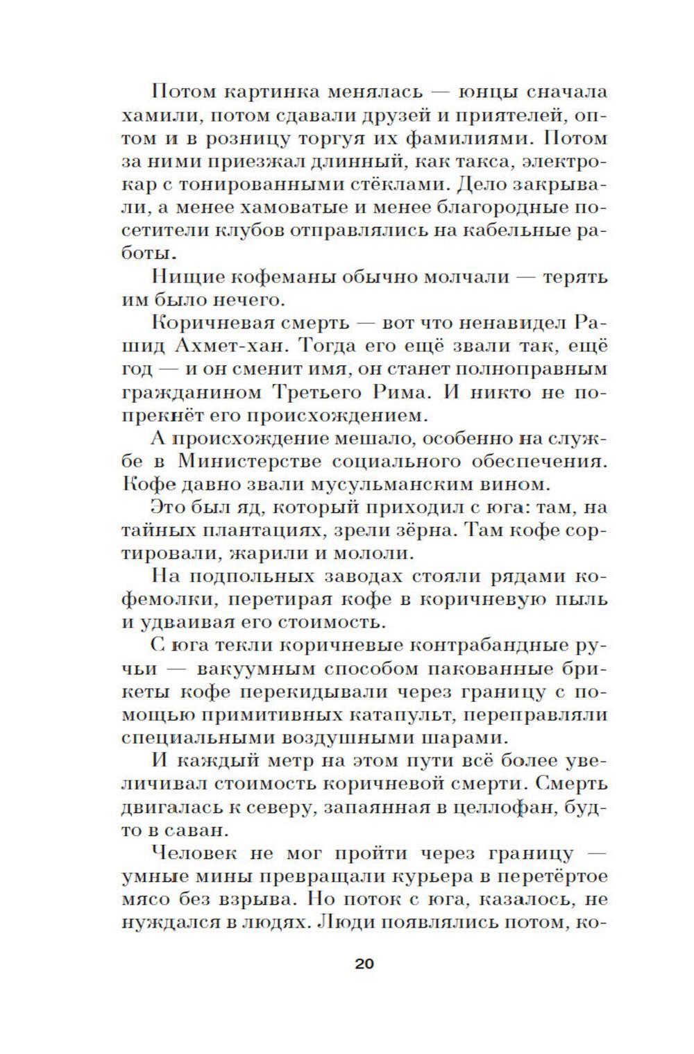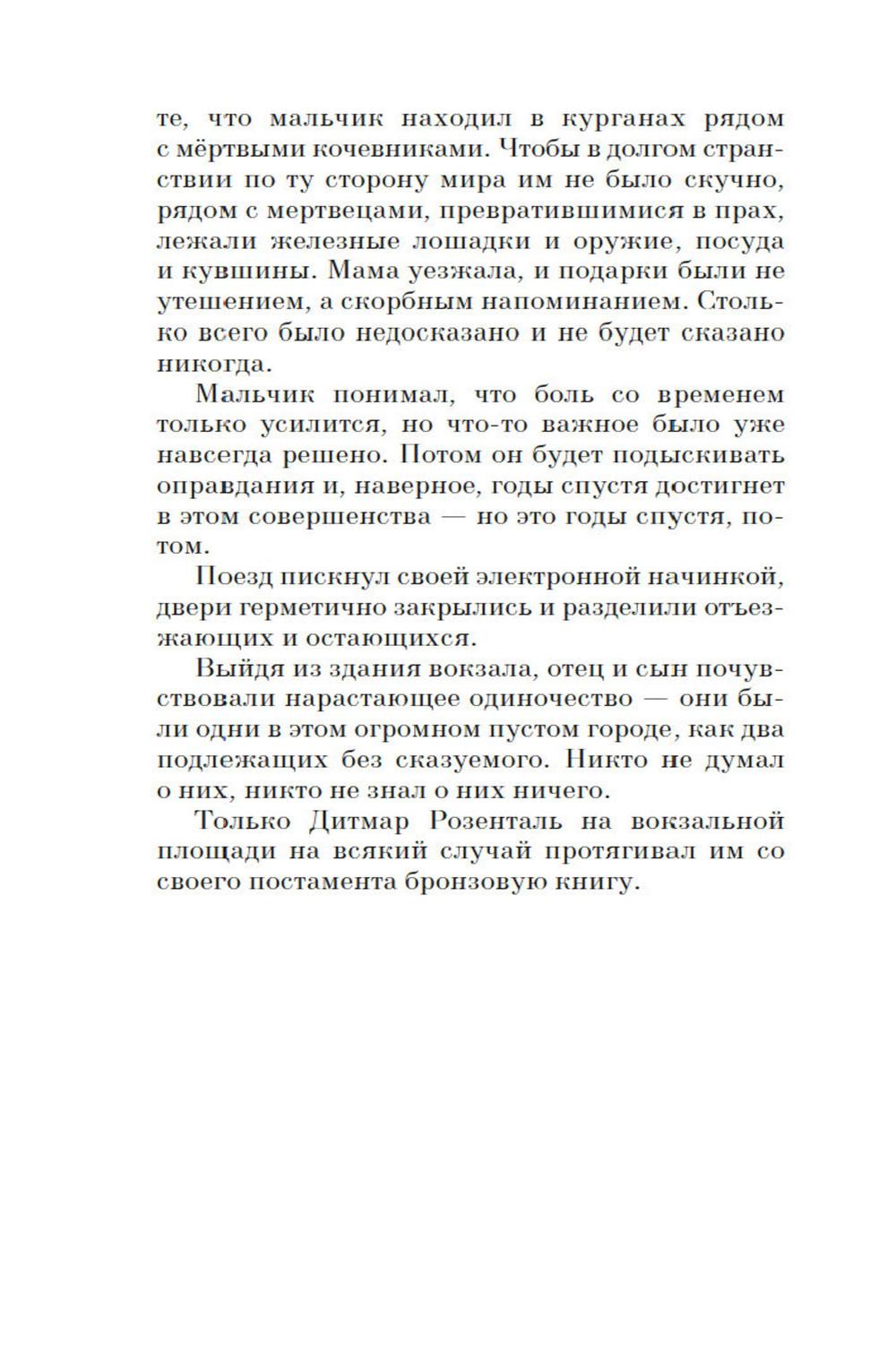 В некоторых языках, у австралийских племён и народов Севера, существует грамматическое время «небудущее». Мистика происходит «сейчас» и «уже», а вот будущее далеко и неопределённо. Чудо живёт в настоящем, которое только притворяется будущим. Герои Владимира Березина, знакомые по «СНТ» и «Пентаграмме Осоавиахима», во главе с Владимиром Раевским видят преображённое настоящее, расходящееся, как тропки в саду Борхеса. Это мир, в котором победили не большевики, а толстовцы; кофе запрещён как наркотик. Среди северной равнины стоит бетонный волк, а в тихой городской воде живёт Царь рыб, смерть приходит к шахматистам, требуя доиграть старую партию, а гармонист спасает человечество от безумных идей страшного карлика. За всем этим отрешённо наблюдает со своего постамента бронзовый Розенталь. Возможно, то, что сегодня выглядит диковиной и фантастическим допущением, уже завтра окажется обыденной реальностью. Ведь таков великий закон писателей-демиургов, да и подобные превращения мы видели уже не раз...