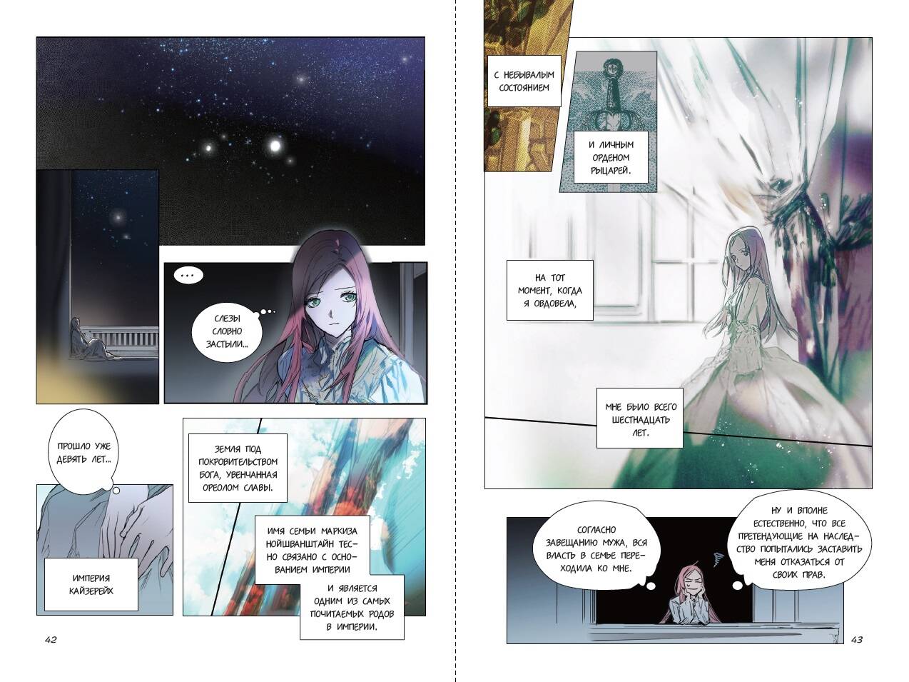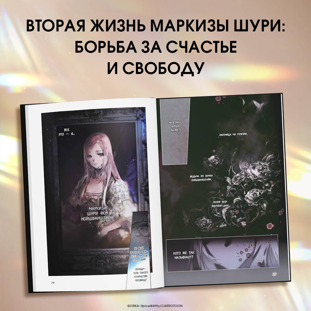 Популярная романтическая сёдзё-манхва в средневековых декорациях. По одноименной новелле официально на бумаге в России! Ее называли Железной Вдовой, охотницей на мужчин, ведьмой из замка, позором всех знатных дам. В целой империи не найдется никого с таким количеством прозвищ, как у маркизы Шури фон Нойшванштайн. Хладнокровная и расчетливая леди в благородном обществе, пропитанном ложью, не доверяет никому. Она жила отчаянно и самозабвенно, потому что дала обещание покойному мужу оберегать его детей. Юная и неопытная Шури растила их как родных, несмотря на незначительную разницу в возрасте и сложные взаимоотношения, а в итоге ее ждала смерть. Однако Шури таинственным образом вернулась на семь лет назад - в ночь похорон маркиза. Теперь у девушки есть шанс обрести союзников и избавиться от своих ниточек марионетки. Сможет ли она обрести счастье и правильно воспользоваться вторым шансом? На корейском сайте KakaoPage более 3 млрд просмотров. Невероятной красоты рисовка, в которой уделяется особое внимание деталям, оригинальная верстка блока текста, обложка с тиснением фольгой.| Издательство | ООО "Издательство "Эксмо" |