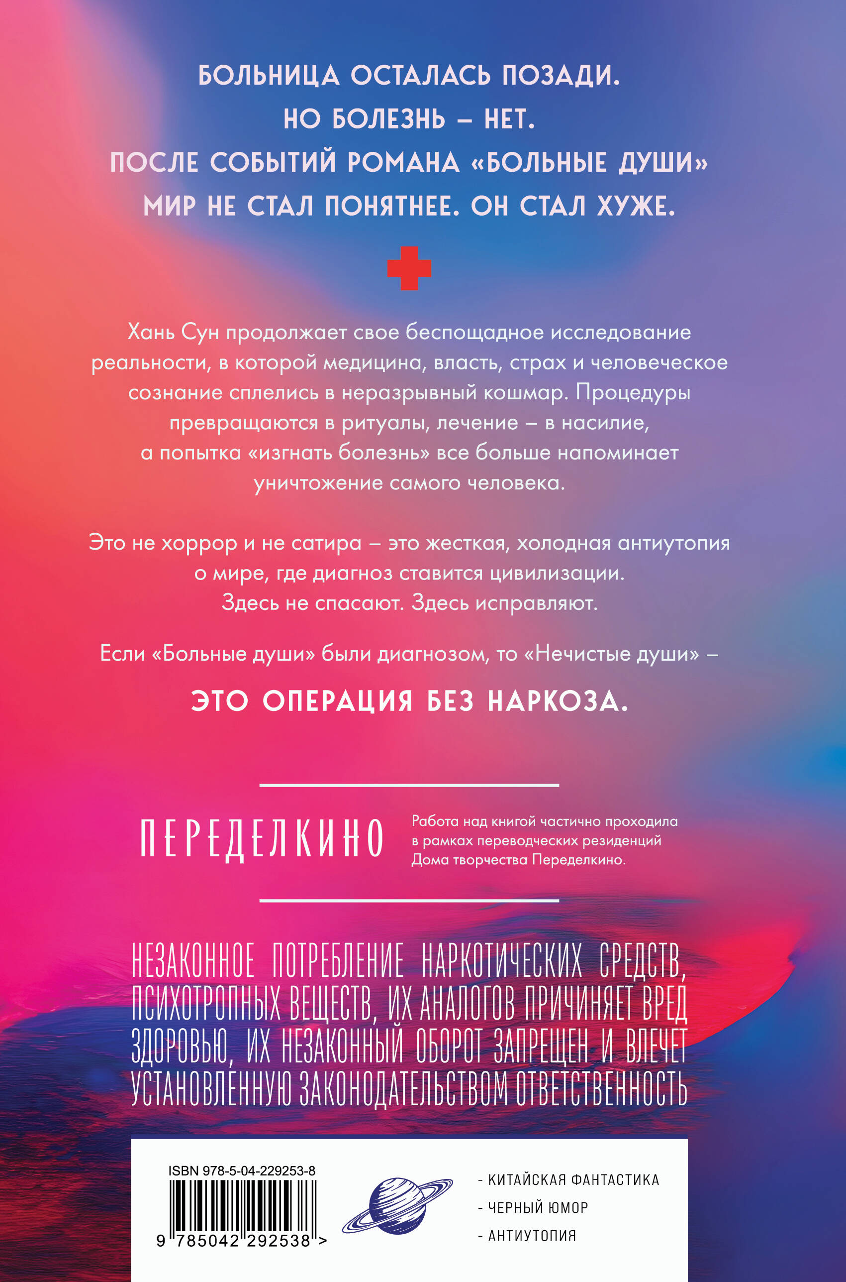 НЕЗАКОННОЕ ПОТРЕБЛЕНИЕ НАРКОТИЧЕСКИХ СРЕДСТВ, ПСИХОТРОПНЫХ ВЕЩЕСТВ, ИХ АНАЛОГОВ ПРИЧИНЯЕТ ВРЕД ЗДОРОВЬЮ, ИХ НЕЗАКОННЫЙ ОБОРОТ ЗАПРЕЩЕН И ВЛЕЧЕТ УСТАНОВЛЕННУЮ ЗАКОНОДАТЕЛЬСТВОМ ОТВЕТСТВЕННОСТЬ. Страдаешь - значит, еще жив. Ян Вэй просыпается и понимает, что по-прежнему является пациентом больницы. За одну ночь он каким-то образом постарел на несколько десятилетий и теперь находится в гериатрическом отделении гигантского госпитального корабля, дрейфующего по кроваво-красному морю, полному отвратительных созданий. Однако человеческие останки и морские нимфы - ничто по сравнению с тем, что происходит в глубинах судна. Врачей нигде не найти: их место заняла вереница медицинских роботов, от которых, разумеется, невозможно добиться ни одного внятного ответа. Тогда Ян Вэй вместе с небольшой группой таких же внезапно состарившихся пациентов отправляется исследовать неизведанные уровни корабля, надеясь отыскать скрытые там объяснения происходящему. Но чем глубже они проникают внутрь судна - и в саму причину своего пребывания на нем, - тем больше тайн раскрывается, и каждая из них вызывает лишь новые вопросы. Единственное, в чем Ян Вэй уверен: чем больше он узнает, тем меньше понимает… и тем меньше ему хочется знать правду. «Причудливые повороты сюжета и тревожная, всепроникающая неправильность захватывают и напоминают другие постмодернистские классические произведения». - Booklist «Очень странная и уникальная книга… не для всех, но для тех, кто любит вызов». - Goodreads «Это произведение - не только футуристический триллер, но и философское размышление о технологии, контроле и человеческом существовании; язык и концепция создают пространство, близкое к сегодняшнему дню, но наполненное тревогой будущего». - Жюри китайской премии «Туманность» «Та научная фантастика, которую пишу я, двухмерна, но Хань Сун пишет трехмерную научную фантастику. Если рассматривать китайскую НФ как пирамиду, то двухмерная НФ будет основанием, а трехмерная, которую пишет Хань Сун, - вершиной». - Лю Цысинь «Главный китайский писатель-фантаст». - Los Angeles Times| Издательство | ООО "Издательство "Эксмо" |