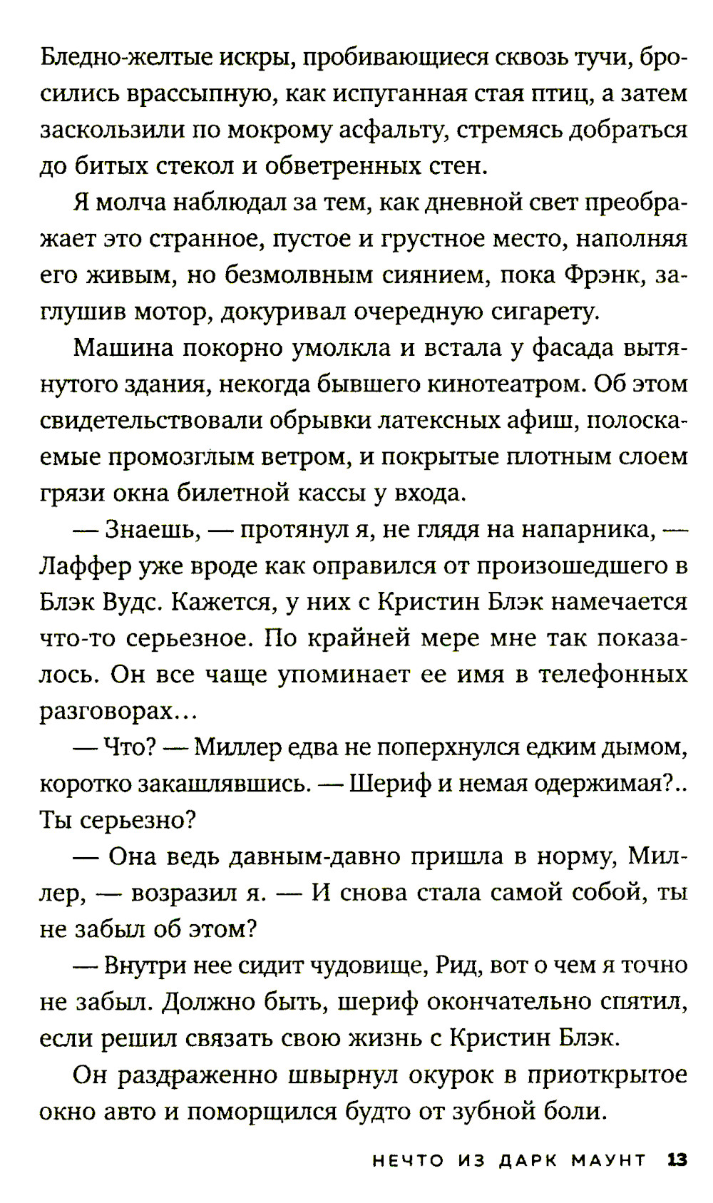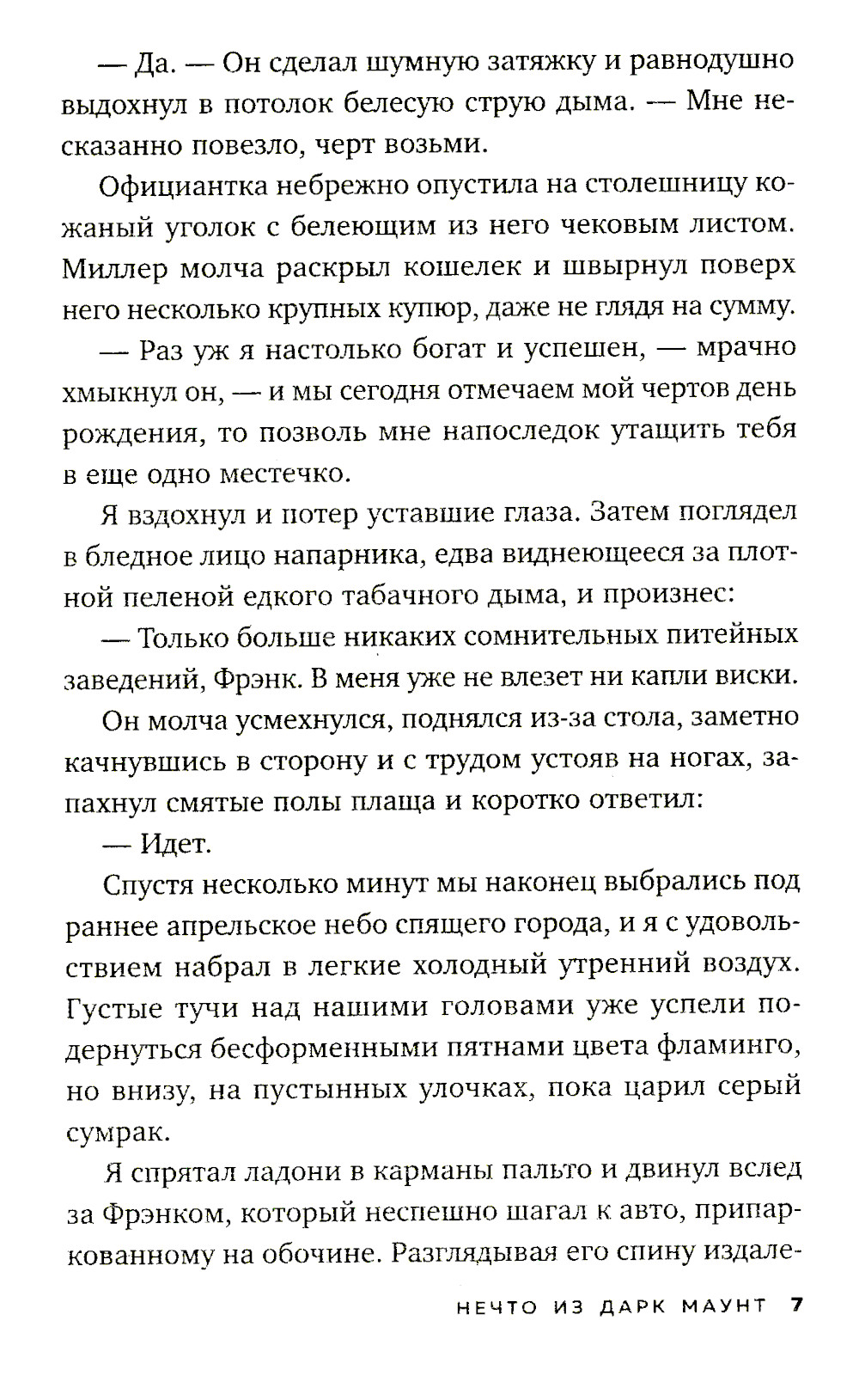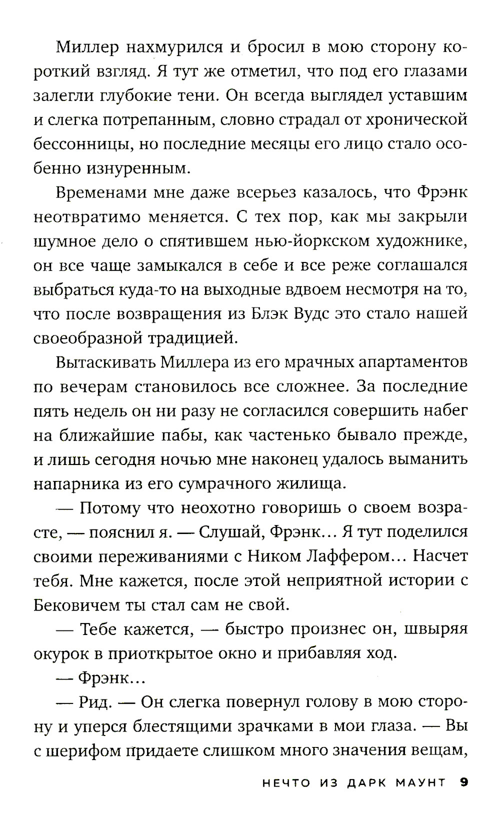 Двадцатилетний Стэнли Вайд найден повешенным в заброшенном доме городка Дарк Маунт, где он жил последние несколько недель. Однако произошедшее не выглядит как банальное самоубийство: вокруг кровати расставлены зеркала, позволяющие видеть, что происходит под ней, а все стекла в старом доме закрашены отражающей краской. Друзья Стэнли Вайда в один голос утверждают, что незадолго до смерти парень начал вести себя очень странно, после чего оборвал все контакты и скрылся. Прибыв на место, Фрэнк Миллер находит улики, которые свидетельствуют об одном: Вайд пытался защититься от чего-то противоестественного...| Издательство | Яуза |