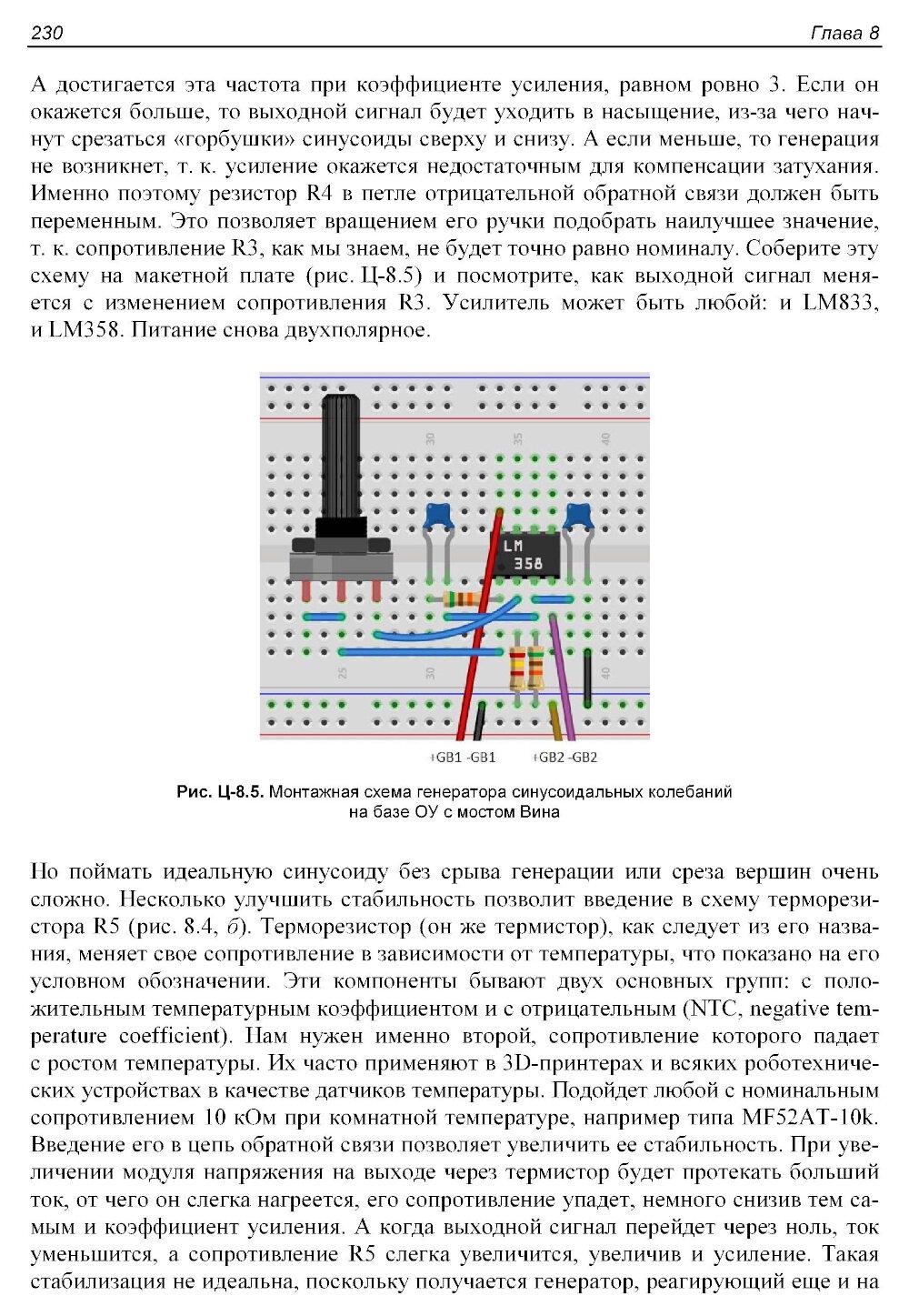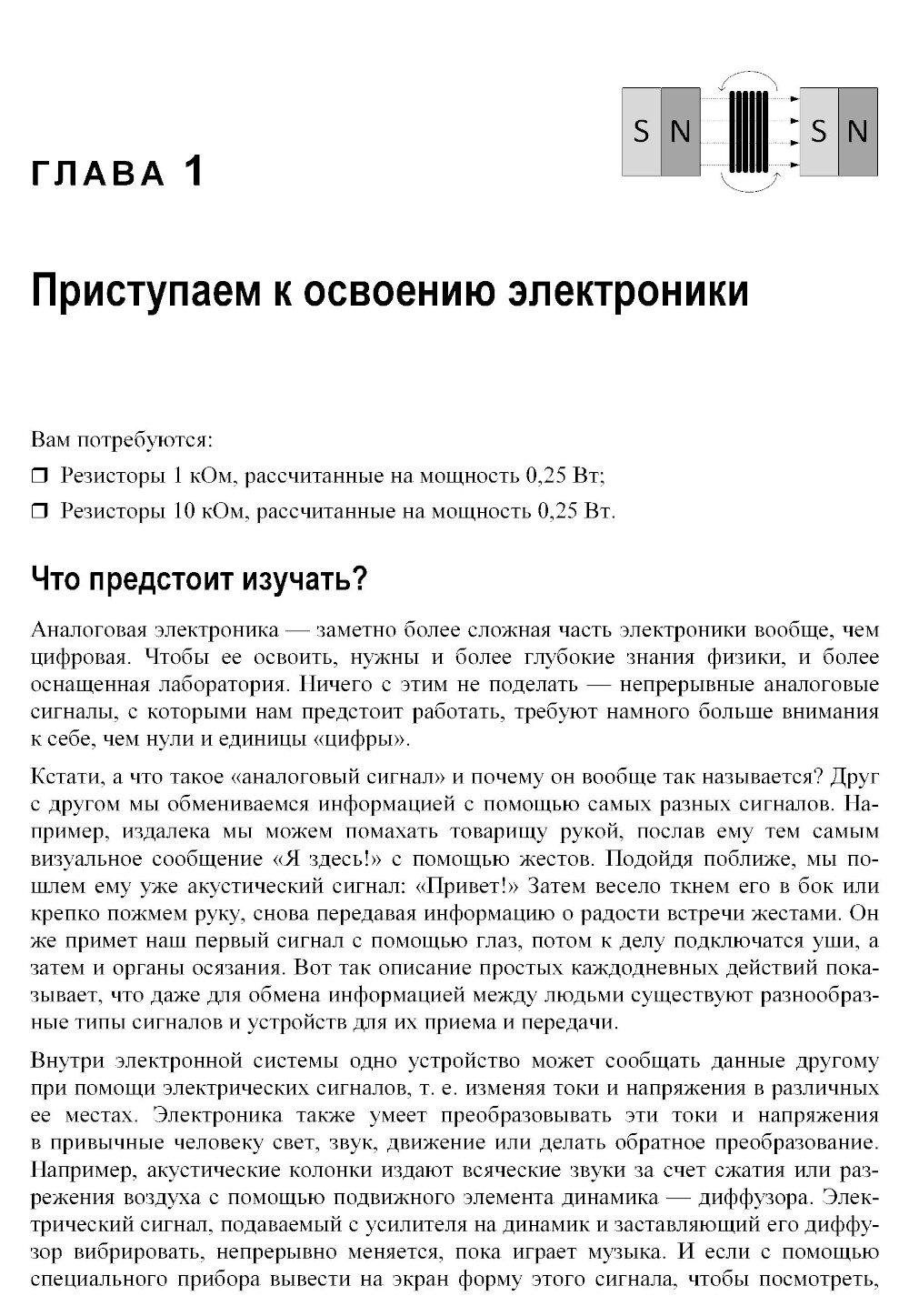 Основы аналоговой электроники изложены доступным для начинающих способом - путем создания на макетной плате простых устройств, которые сразу после сборки начинают работать, не требуя пайки и программирования. Набор необходимых деталей сведен к минимуму. Рассмотрены аналоговые сигналы и их свойства, простейшие усилительные схемы на транзисторах, законченные устройства на транзисторах и микросхемах, усилители, генераторы и фильтры. По ходу изложения даны необходимые теоретические сведения о работе полупроводниковых приборов, а также вопросы для самопроверки и задания на самостоятельную разработку схем с ответами и решениями в конце глав. Электронный архив на сайте издательства содержит обучающие видеоролики по теме книги.| Издательство | BHV(БХВ) |