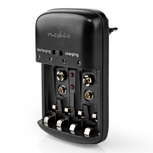 Это универсальное зарядное устройство может заряжать / разряжать две или четыре батареи 4 AA / AAA и одну или две батареи 9 В (только функция зарядки). Просто подключите устройство, вставьте батареи и установите переключатель в режим зарядки или разрядки.