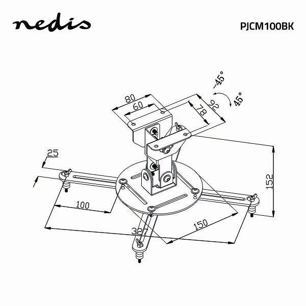 Nedis PJCM100BK Потолочное крепление для проектора 360 ° Max 10kg