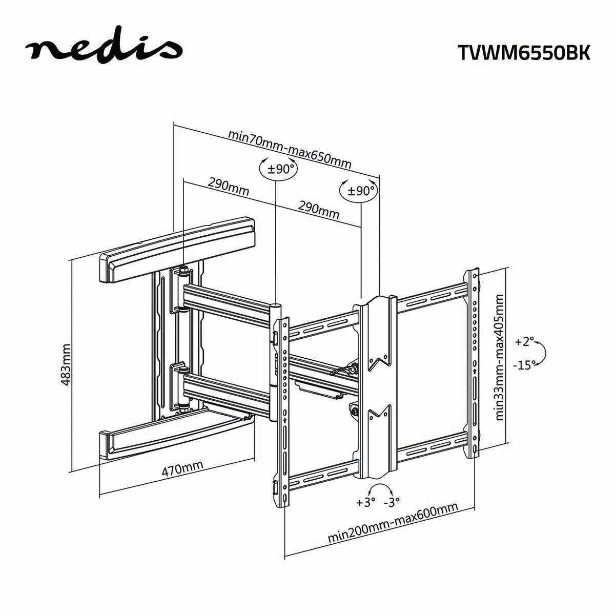 Nedis TVWM6550BK Настенное ТВ крепление LED / LCD / PLASMA TV / 37-80"/ Max 50kg