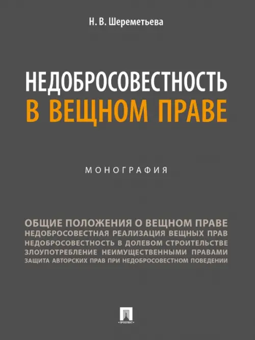 Монография посвящена исследованию недобросовестного поведения участников гражданского оборота при приобретении, прекращении или изменении вещных прав.