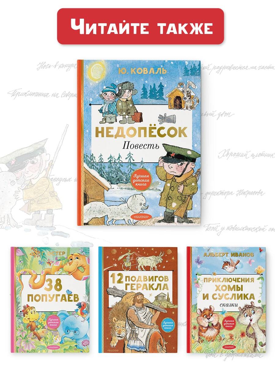 "Недопёсок" - одно из самых знаменитых произведений Юрия Коваля. Это повесть о молодом песце, недопёске, Наполеоне Третьем, который сбежал со зверофермы и отправился на Северный по- люс, на свободу! По пути недопёску встречаются и люди, и звери, друзья и недруги, и маленькому Наполеону приходится самому решать, кому можно доверять, а кому нет. В книге настолько захваты- вающий сюжет и так чётко прописаны характеры главных героев, что это произведение читается на одном дыхании! Поэт Арсений Тарковский назвал книгу "Недопёсок" одной из лучших книг на земле. В книге иллюстрации Дмитрия Трубина, за которые художник был награждён почётным дипломом Международной премии Х. К. Андерсена. Для среднего школьного возраста.| Издательство | ИЗДАТЕЛЬСТВО "АСТ" |