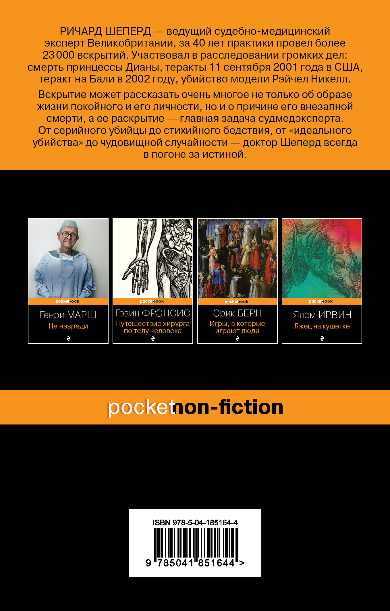 Об авторе Ричард Шеперд - ведущий судмедэксперт Великобритании, опыт работы более 40 лет, провел около 23 000 вскрытий. Был признан главным экспертом по ножам, т.к. он по ране может определить, каким холодным оружием она сделана. Особенности книги 1) Описание громких дел, подробности которых всем интересно узнать, плюс новые факты о них (причины смерти принцессы Дианы, теракт 11 сентября, дела серийных убийц). 2) Описание интересной, шокирующей и нестандартной профессии. 3) Каждый читатель будет вести дела вместе с автором, постепенно докапываясь до правды. 4) Книга-бестселлер в Великобритании, по версии The Times признана главной книгой 2018 года. Какую потребность удовлетворяет книга? 1) Интерес к криминальным делам, следствию, желание узнать правду. 2) Узнать про то, как работают судмедэксперты, что происходит в первые часы после трагедии. 3) Интерес к личности автора. 4) Почерпнуть новое для студентов медицинских вузов. Отзыв эксперта «Книга доктора Ричарда Шеперда уникальна тем, что впервые показывает читателю работу судебно-медицинского эксперта Великобритании, её нюансы, проблемы и достоинства. Участие в осмотре мест происшествия, работа в секционном зале, расследование резонансных дел, в том числе сопряжённых с массовыми человеческими жертвами, - обо всём этом автор рассказывает профессионально и очень подробно, а его биография, проходящая через всё произведение, делает книгу ещё более интересной. Книга будет интересна судебно-медицинским экспертам, которые найдут в ней много общего с работой отечественного судмедэксперта, патологоанатомам, а также всем интересующимся данной тематикой». - Алексей Решетун, судебно-медицинский эксперт Бюро СМЭ Москвы, автор книги «Вскрытие покажет: Записки увлеченного судмедэксперта» и блога mossudmed.livejournal.com| Издательство | ООО "Издательство "Эксмо" |