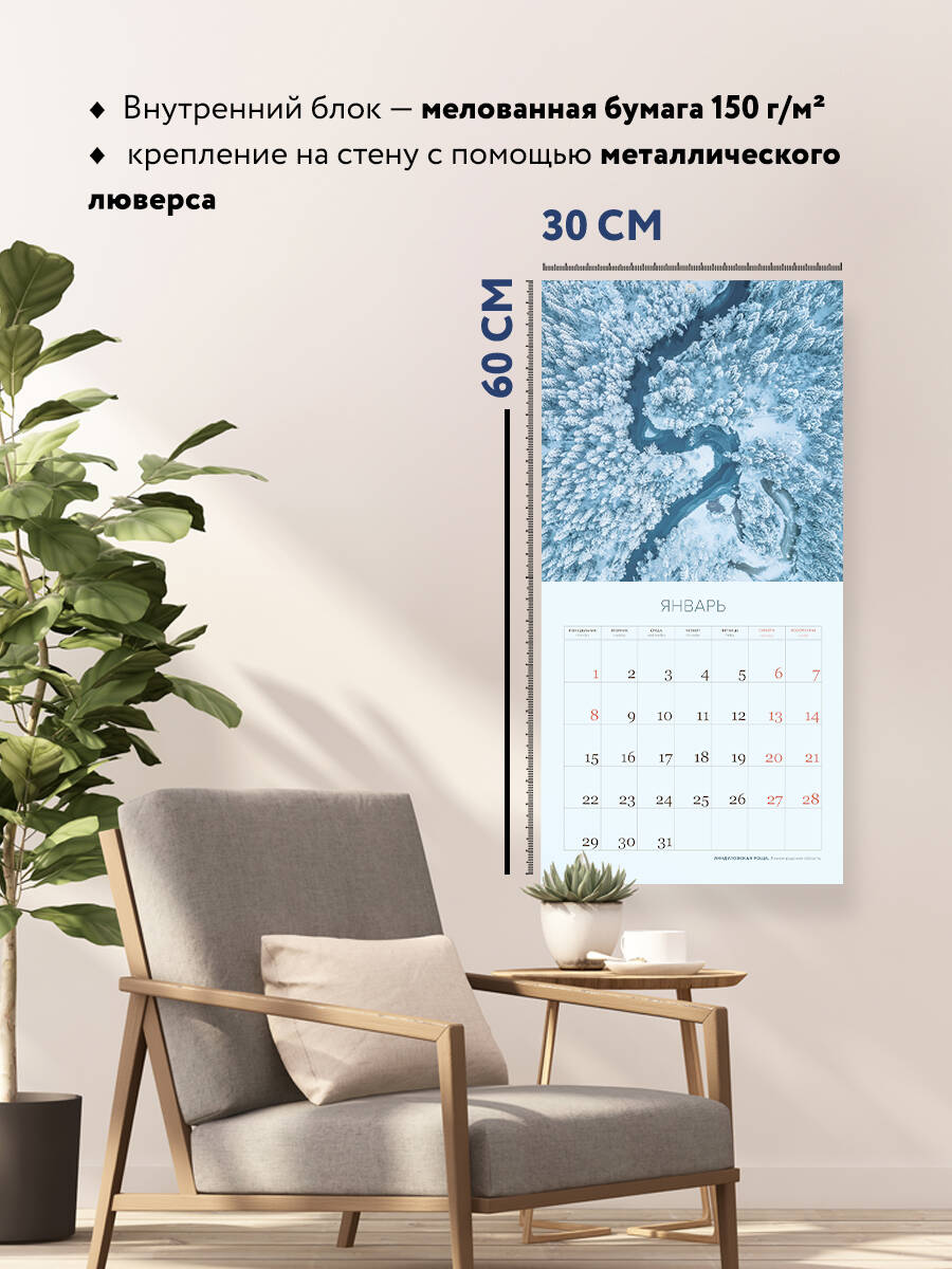 О серии: Наши настенные календари отличаются высоким качеством исполнения! Тщательно подобранные иллюстрации, напечатанные на глянцевой бумаге высочайшего качества, станут настоящим украшением дома, а в календарной сетке найдется место для ваших планов: большие клетки позволят делать записи и организовать свой год! В календаре также отмечены все государственные праздники. В серии настенных календарей издательства «ЭКСМО» каждый найдет тему по вкусу: великие художники, великолепные подборки с самыми знаменитыми произведениями искусства, легендарные кинематографические саги и игры, главные книжные авторы и бестселлеры, фотографии и иллюстрации любимых животных и многое-многое другое! О календаре: В календаре подобраны невероятные фотографии разных уголков нашей страны: удивительные вулканы Камчатки, просторы Алтая, красоты Якутии и многое другое. Невероятная природа нашей страны точно вдохновит вас на увлекательное и атмосферное путешествие по России. Автор снимков - известный travel-фотограф и основатель сообщества Russian Explorers Александр Мазуров. Посмотрите на Россию его глазами, ведь Александр видит нашу страну так, что оторваться от снимков невозможно! В календарь включен дополнительный разворот с первыми 4 месяцами 2025 года. Для кого: Захватывающие фотографии уголков России, напечатанные на высококачественной бумаге, придутся по вкусу ценителям прекрасного и любителям атмосферных пейзажей. Технические параметры: - Тип календаря - настенный перекидной. - Год - 2024. - Календарная сетка - с разбивкой по месяцам. - Вид скрепления - скрепка. - Ширина - 30 см. - Высота - 30 см. - Внутренний блок - мелованная бумага 150 г/м2. - Подложка - плотный гофрокартон для поддержания формы. - Индивидуальная упаковка в плотный целлофановый пакет.| Издательство | ООО "Издательство "Эксмо" |