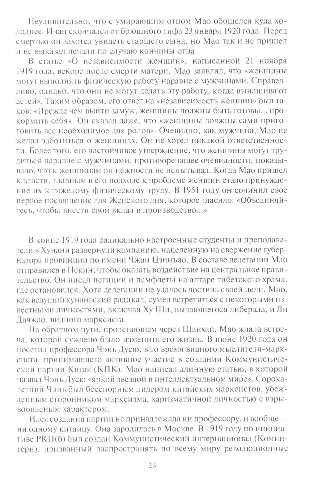 Книга «Неизвестный Мао» Джона Холлидея и Юн Чжан вошла в число мировых бестселлеров. Она беспрецедентна как по объему использованных источников, так и по числу исторических открытий. Документальную основу составили материалы архивов Тайваня, США, Японии, России и ряда других стран. Авторам удалось получить доступ к архивам Китайской Народной Республики, несмотря на то что официальный Пекин не приветствовал создание неподцензурной биографии Мао. Книга, запрещенная в Китае, открыла мировой общественности личностный феномен коммунистического тирана.| Издательство | Центрполиграф |