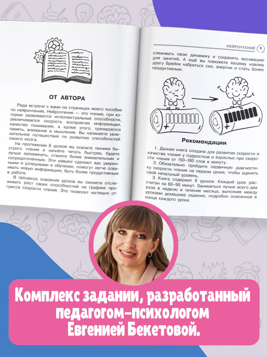 Читать не только интересно, но и полезно! Этот навык улучшает работу мозга, повышает уровень интеллекта. В книге представлена авторская методика нейрочтения Евгении Бекетовой - педагога, психолога и опытного брейн-тренера. Система увлекательных упражнений позволит всего за месяц значительно увеличить скорость восприятия информации, улучшить понимание прочитанного, а также прокачать память и внимание. Для тех, кто не хочет останавливаться на достигнутом, предусмотрен еще месяц занятий на более сложном уровне. Бонусные задания доступны по QR-коду. Это не просто книга, а ваш личный брейн-тренер! Для широкого круга читателей.| Издательство | Издательство "АСТ" |