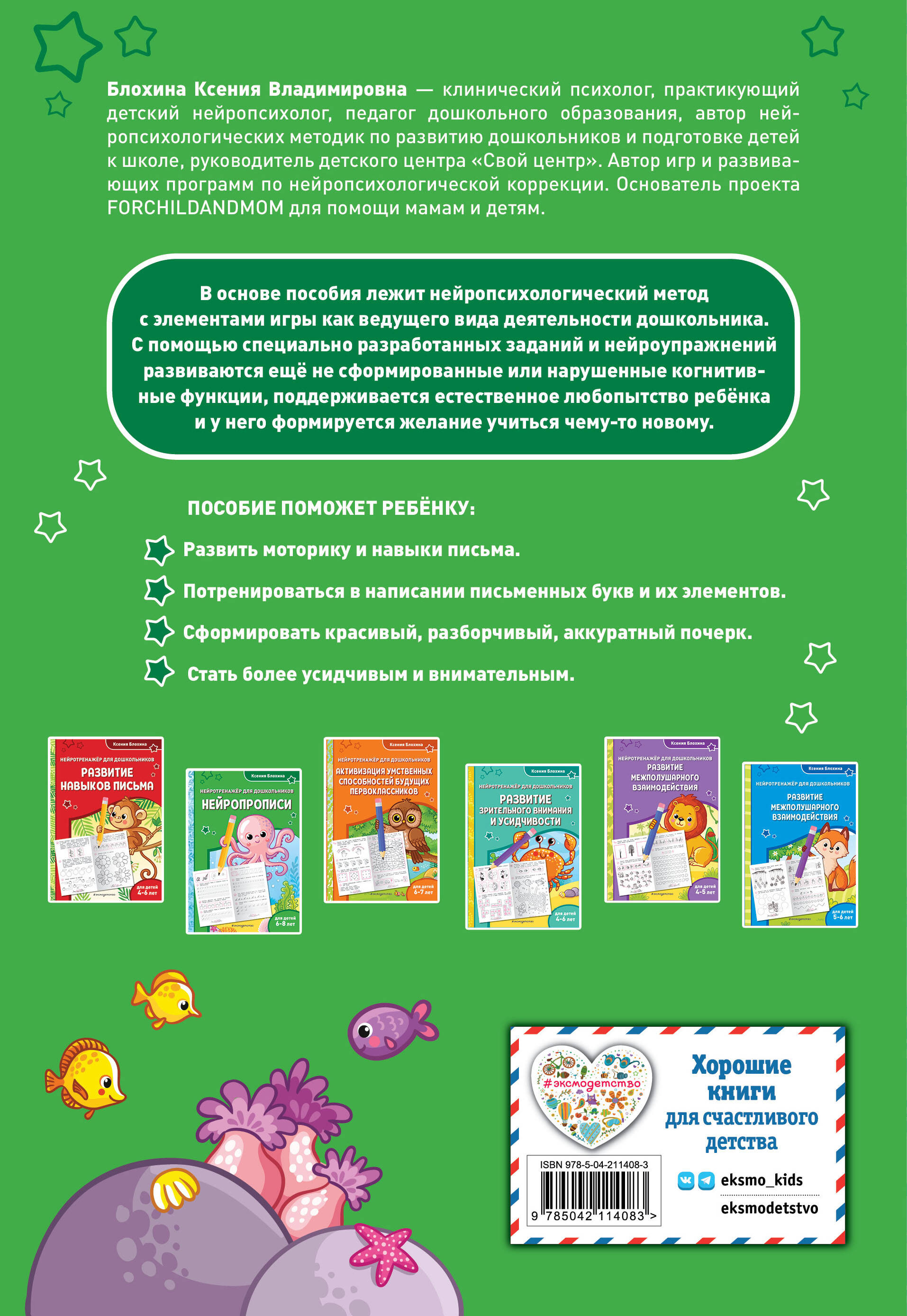 Обучающее пособие от издательства «Эксмо» разработано практикующим нейропсихологом и поможет ребёнку развить навыки письма, основываясь на нейропсихологическом методе. Занимаясь, ребёнок будет обводить линии по пунктиру, потренируется в ровном и аккуратном написании письменных букв и их элементов. Нейроразминки помогут проработать движения на моторном уровне, научиться управлять пальцами и кистью руки. Чем лучше ребёнок владеет собственными руками, тем меньше они устают, и тем легче проходит обучение письму. Представленные в книге задания способствуют укреплению межполушарных связей, активизации работы мозга, а также формированию красивого почерка, развитию внимания, пространственных представлений.| Издательство | ООО "Издательство "Эксмо" |
