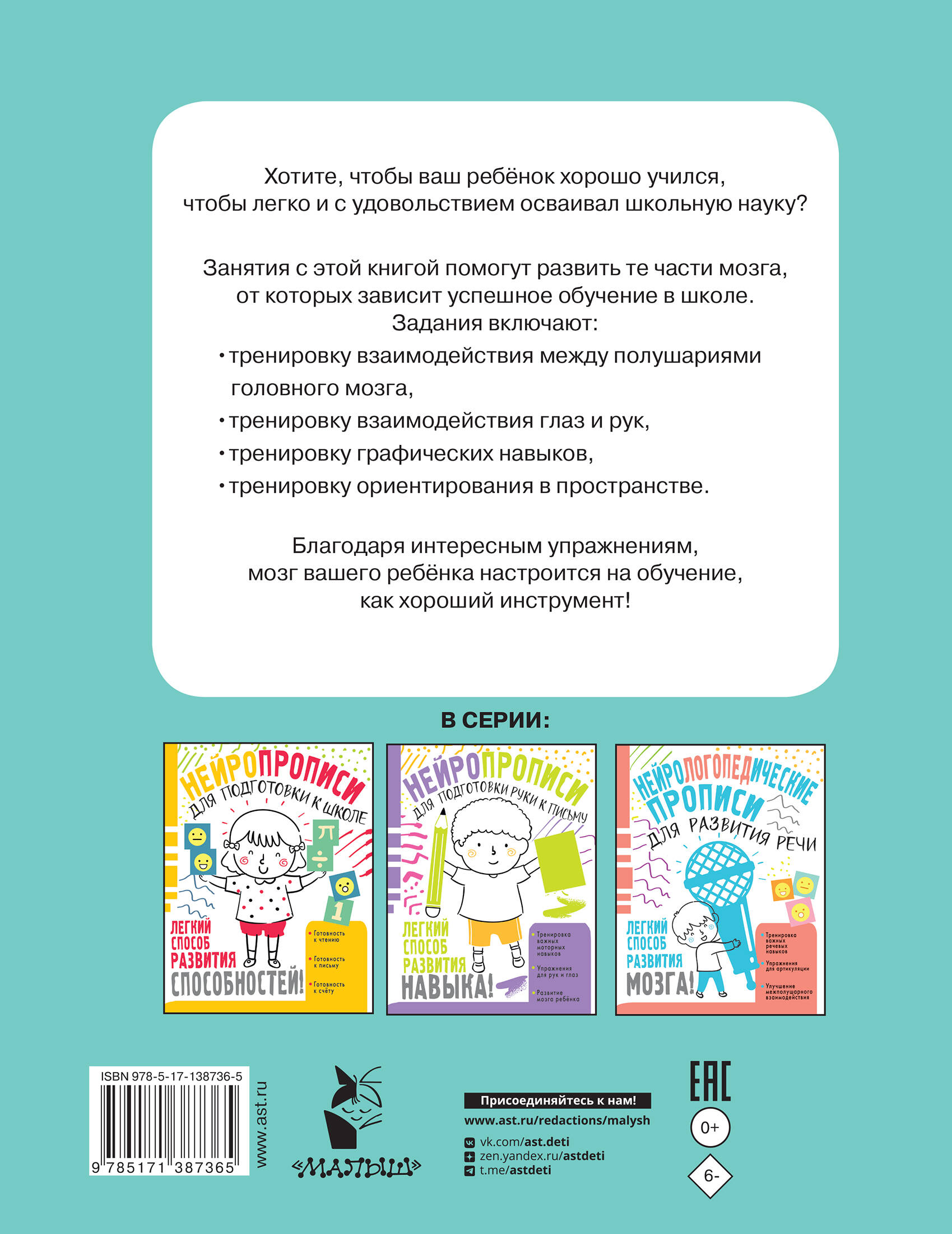 Хотите, чтобы ваш ребёнок хорошо учился, чтобы легко и с удовольствием осваивал школьную науку? Эта тетрадь-тренажёр - прекрасный помощник для детей и родителей! Умение говорить, сложнейший навык, требующий: •хорошо развитого слухового восприятия, •развитого слухового внимания и памяти, •взаимодействия между полушариями мозга, •хорошо развитого фонематического слуха, •умелого артикуляционного аппарата, •правильного речевого дыхания, •развитого словесно-логического мышления. Если мозг малыша ещё не готов к работе хотя бы по одному пункту, то обучение в школе может стать трудоёмким и сложным делом. Поэтому, очень важно подготовить к учёбе: мозг, слух и речевой аппарат.| Издательство | АСТ |