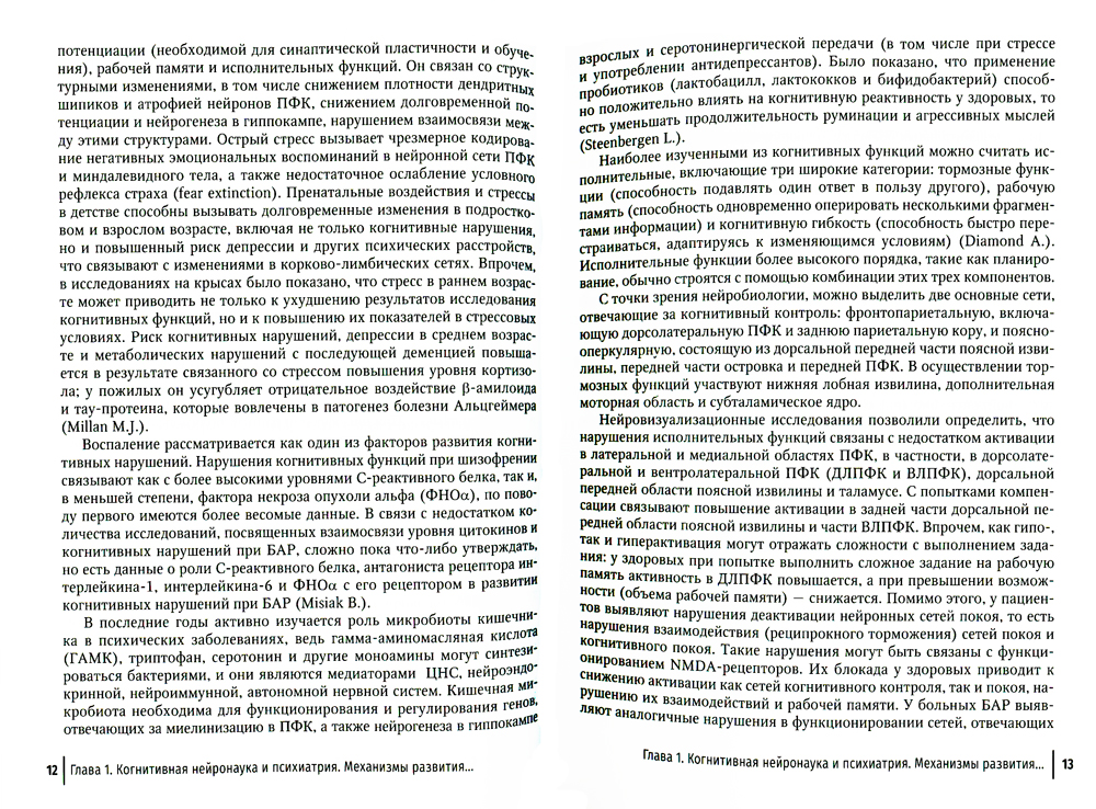 К когнитивным функциям относится множество процессов, включая внимание, принятие решений, исполнительные функции, проблемно-решающее поведение, язык и память. Когнитивные нарушения сопутствуют многим психическим расстройствам и определяют степень функционального восстановления, повседневной и социальной адаптации, поэтому их диагностика и коррекция представляются необходимыми задачами в рамках здравоохранения. В руководстве раскрывается понятие когнитивных расстройств как актуальной междисциплинарной проблемы, описаны методы диагностики, дана характеристика когнитивных нарушений и приведены подходы к терапии при различных психических расстройствах. Книга содержит психологический практикум с современными методиками для изучения когнитивных нарушений, описание их нейробиологических основ. Издание предназначено специалистам, работающим в сфере охраны психического здоровья, психоневрологии, а также может быть рекомендовано для непрерывного профессионального образования врачей-психиатров, неврологов, психотерапевтов, медицинских психологов. Руководство может использоваться в учебном процессе при подготовке студентов-медиков по направлению «Лечебное дело», ординаторов по специальности «Психиатрия» и аспирантов по специальности «Психиатрия и наркология».| Издательство | ГЭОТАР-Медиа |