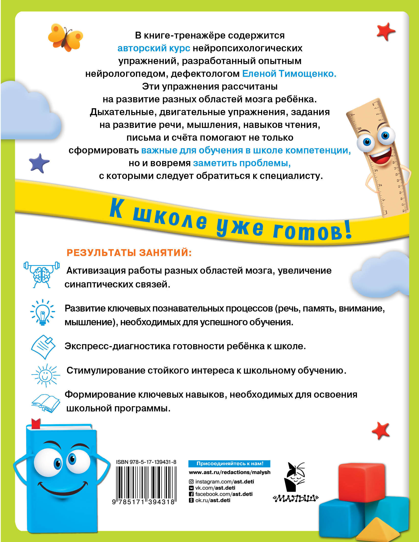5 причин купить книгу: 1. Активизация работы разных областей мозга, увеличение синаптических связей. 2. Развитие ключевых познавательных процессов (речь, память, внимание, мышление), необходимых для успешного обучения. 3. Экспресс-диагностика готовности ребёнка к школе. 4. Стимулирование стойкого интереса к школьному обучению. 5. Формирование ключевых навыков, необходимых для освоения школьной программы.