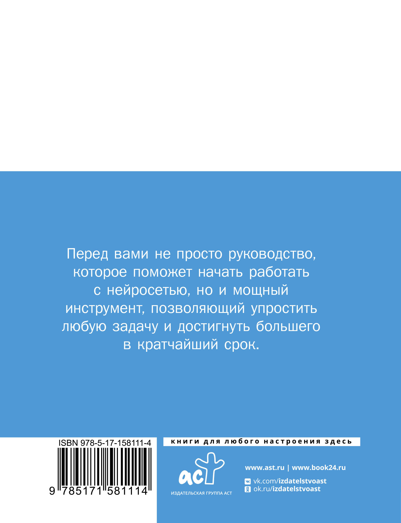 Эта книга - руководство, которое представляет собой введение в мир нейросетей и искусственного интеллекта. Вы узнаете, что такое нейросети, как они работают и как применяются в различных областях. Кроме основных принципов в книге также приведены практические советы по использованию нейросетей, рассказано о том, как сделать работу наиболее эффективной и не тратить на это много времени и ресурсов. Подробно рассмотрен процесс создания текстового и графического контента с помощью наиболее популярных нейросертей - ChatGPT, Midjourney и не только. Основная цель книги - познакомить читателей с искусственным интеллектом и нейросетями, объяснить их суть и показать, как они могут быть применены на практике. Она рассчитана на широкую аудиторию, включая тех, кто только начинает свое знакомство с искусственным интеллектом.