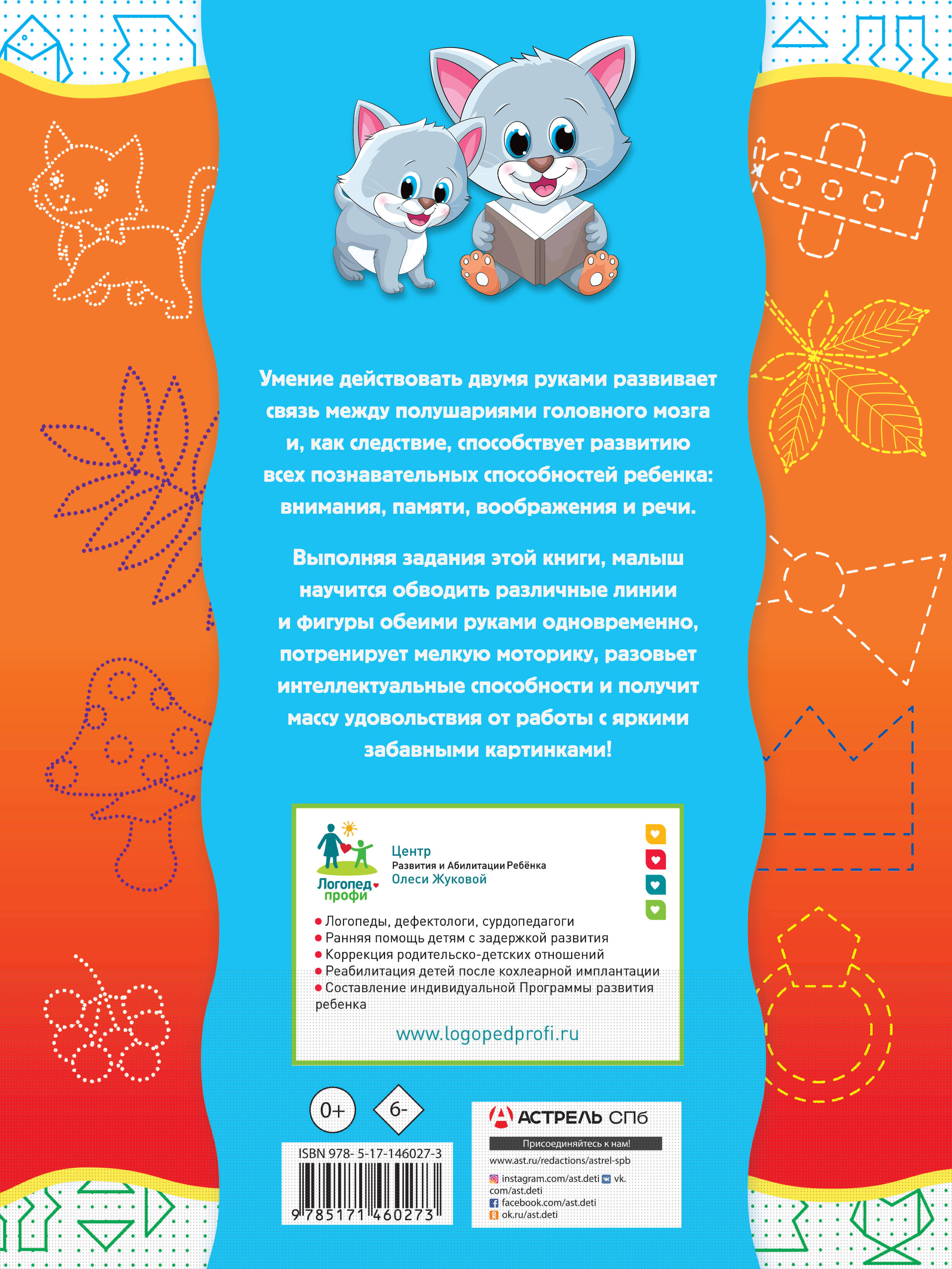 Умение действовать двумя руками развивает связь между полушариями головного мозга и, как следствие, способствует развитию всех познавательных способностей: внимания, памяти, воображения и речи. Выполняя задания этой книги, малыш научится обводить различные линии и фигуры обеими руками одновременно, потренирует мелкую моторику, разовьет интеллектуальные способности и получит массу удовольствия от работы с яркими забавными картинками. Для дошкольного возраста.| Издательство | Издательство "АСТ" |