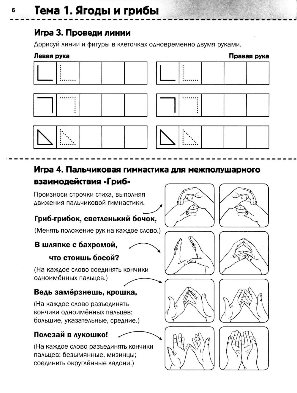 Дорогие родители, воспитатели, логопеды! В нашем методическом пособии вы найдёте комплекс заданий для детей 6-7 лет, направленный на активизацию межполушарного взаимодействия, важного для гармоничного и полноценного развития ребёнка. Занятия построены в виде игр от простого к сложному, они дополняют и закрепляют лексические темы, которые дошкольники изучают в детском саду. Игры при помощи разных механизмов включают межполушарное взаимодействие: побуждают оба полушария мозга работать синхронно, усиливая их связи и координацию. В результате дети активнее развивают ключевые навыки, необходимые для успешного освоения чтения, письма и дальнейшего обучения в школе. Вы можете сами регулировать уровень сложности игровых упражнений. Выбирайте задания, которые по силам ребёнку, - это даёт наилучший результат. Занимайтесь, развивайтесь и радуйтесь вместе с детьми! Тексты в пособии являются заданиями и предназначены для озвучивания детям родителями и воспитателями. Иллюстрации пособия можно копировать и использовать как раздаточный материал. Гурия Османова - логопед, дефектолог, кандидат педагогических наук, член Союза писателей России. А ещё детский поэт: все логопедические рифмовки в этой книге она создала, опираясь на своё языковое чутьё и многолетний опыт работы с детьми.