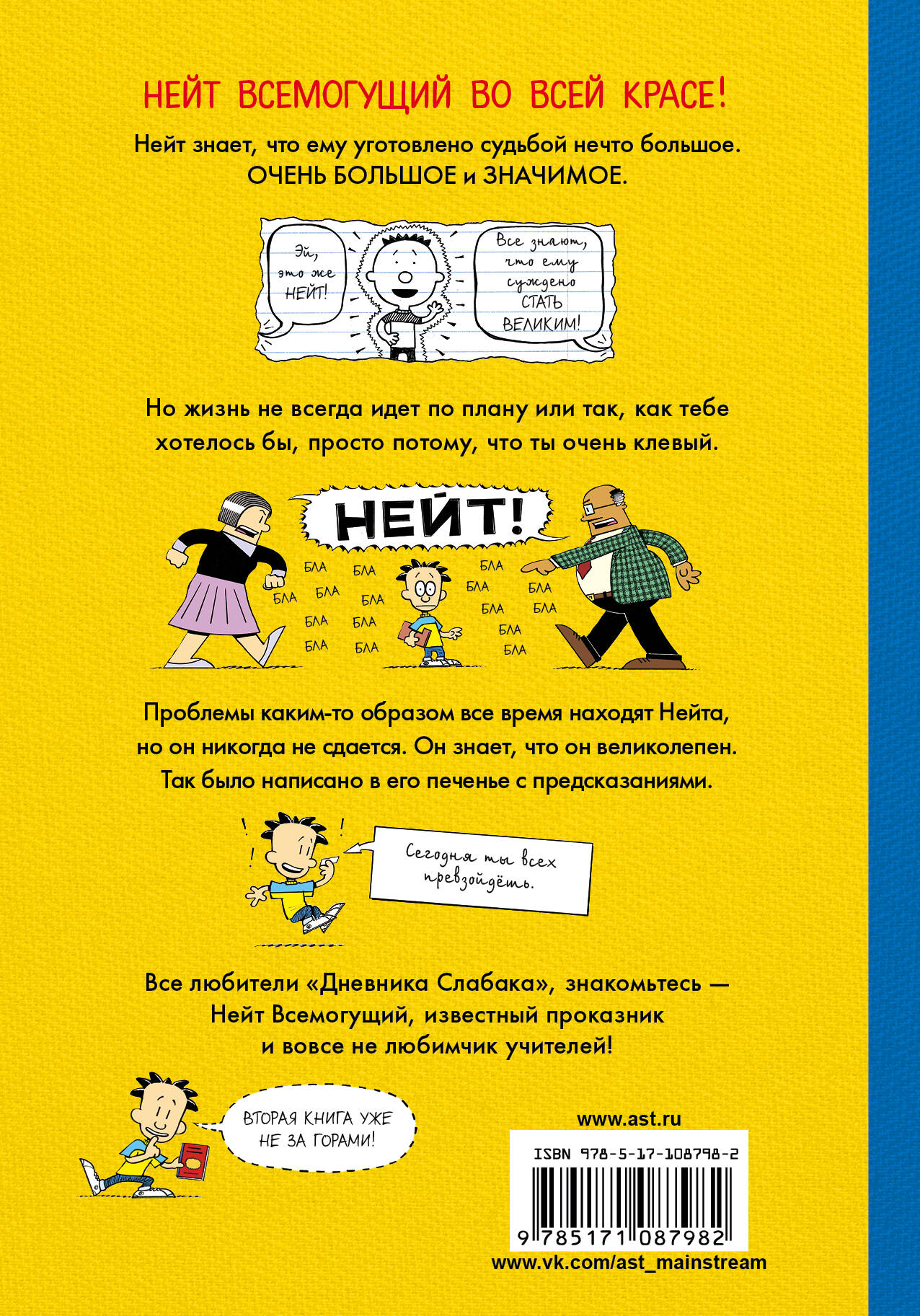 Нейт знает, что ему уготовлено судьбой нечто большое! Очень большое и значимое. Но жизнь не всегда идет по плану ил итак, как тебе того хотелось бы, просто потому, что ты очень клевый. Проблемы каким-то образом все время находят Нейта, но он никогда не сдается. Он знает, что великолепен (так было написано в его печеньке с предсказаниями). Все любители "Дневника Слабака", знакомьтесь - Нейт Всемогущий, известный проказник и вовсе не любимчик учителей!| Издательство | ИЗДАТЕЛЬСТВО "АСТ" |