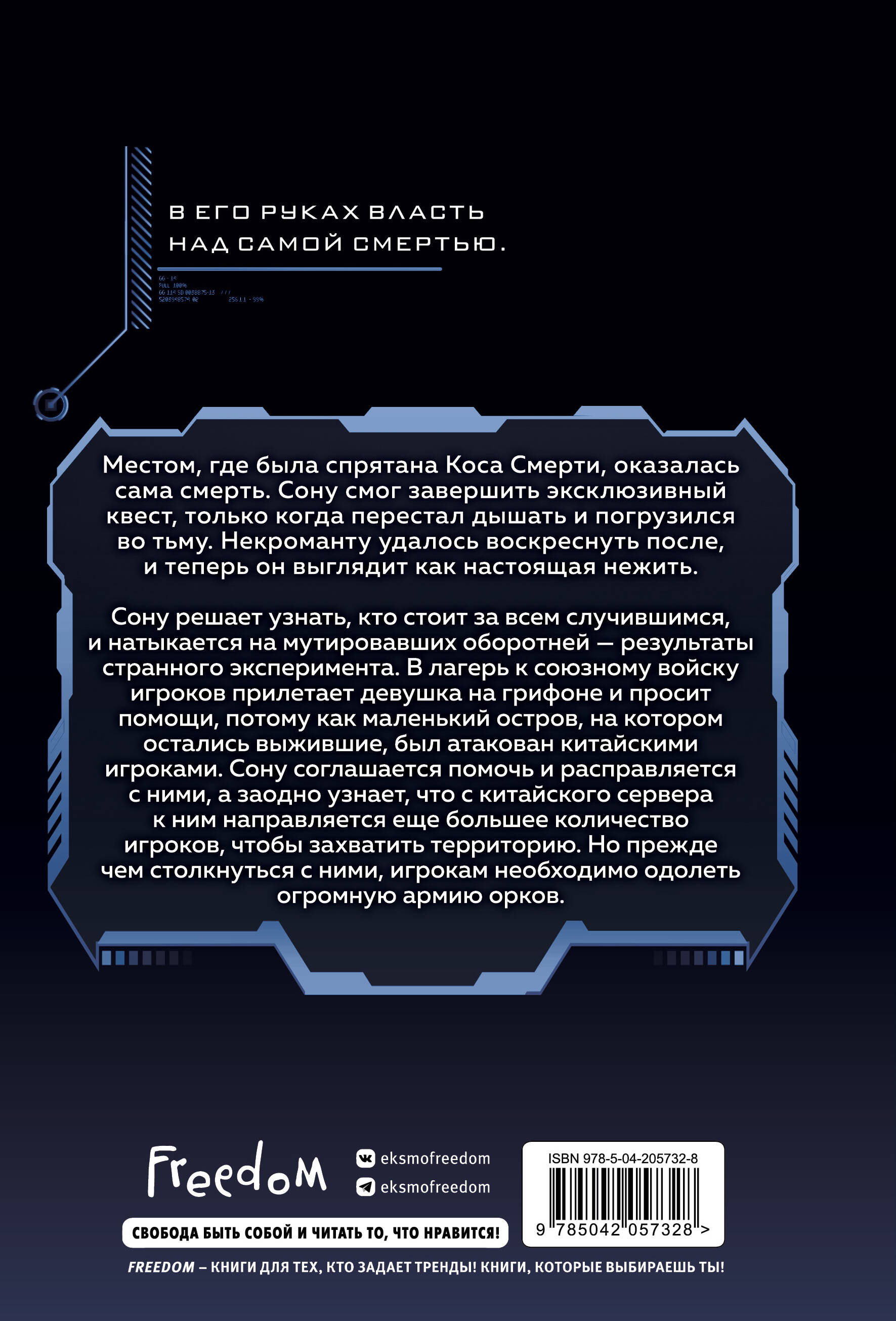 Четвертый том популярной новеллы «Некромант-одиночка» в жанре сёнэн с элементами RPG! В России ее прочитали более 4,3 млн человек. Местом, где была спрятана Коса Смерти, оказалась сама смерть. Сону смог завершить эксклюзивный квест, только когда перестал дышать и погрузился во тьму. Некроманту удалось воскреснуть после, и теперь он выглядит как настоящая нежить. Сону решает узнать, кто стоит за всем случившимся, и натыкается на мутировавших оборотней - результаты странного эксперимента. В лагерь к союзному войску игроков прилетает девушка на Грифоне и просит помощи, потому как маленький остров, на котором остались выжившие, был атакован китайскими игроками. Сону соглашается помочь и расправляется с ними, а заодно узнает, что с китайского сервера к ним направляется еще большее количество игроков, чтобы захватить территорию. Но прежде чем столкнуться с ними, игрокам необходимо одолеть огромную армию орков. По новелле есть красочная одноименная манхва. На корейской платформе Kakaopage у новеллы более 2,1 млн просмотров. На южнокорейской платформе Webtoons у манхвы более 48 млн поклонников. Для фанатов боевого фэнтези, новеллы «Наномашина» и манхвы «Поднятие уровня в одиночку». Иллюстрацию на обложку рисовала Kliory Draw.| Издательство | ООО "Издательство "Эксмо" |