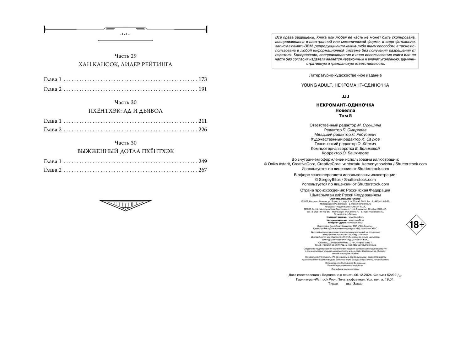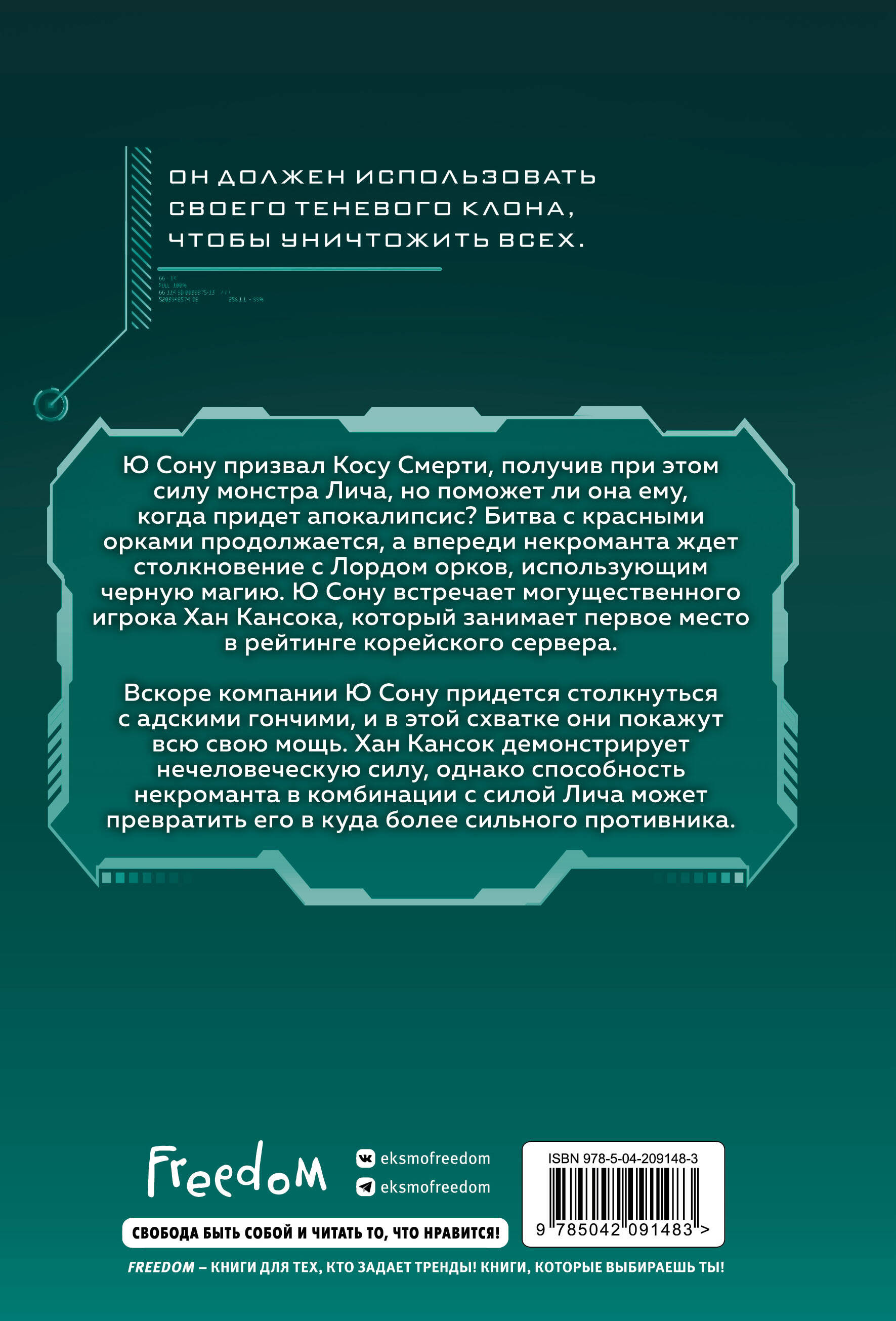 Пятый том популярной новеллы «Некромант-одиночка» в жанре сёнэн с элементами RPG! В России ее прочитали более 4,3 млн человек. Ю Сону призвал Косу Смерти, получив при этом силу монстра Лича, но поможет ли она ему, когда придет апокалипсис? Битва с красными орками продолжается, а впереди некроманта ждет столкновение с Лордом орков, использующим черную магию. Ю Сону встречает могущественного игрока Хан Кансока, который занимает первое место в рейтинге корейского сервера. Вскоре компании Ю Сону придется столкнуться с адскими гончими, и в этой схватке они покажут всю свою мощь. Хан Кансок демонстрирует нечеловеческую силу, однако способность некроманта, в комбинации с силой Лича, может превратить его в куда более сильного противника. По новелле есть красочная одноименная манхва. На корейской платформе Kakaopage у новеллы более 2,1 млн просмотров. На южнокорейской платформе Webtoons у манхвы более 58.9 млн поклонников. Для фанатов боевого фэнтези, новеллы «Наномашина» и манхвы «Поднятие уровня в одиночку». Иллюстрацию на обложку рисовала Kliory Draw.| Издательство | ООО "Издательство "Эксмо" |