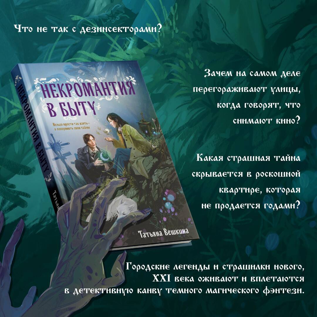 Что не так с дезинсекторами? Зачем на самом деле перегораживают улицы, когда говорят, что снимают кино? Какая страшная тайна скрывается в роскошной квартире, которая не продается годами? Эти и другие загадки одного маленького городка будут раскрыты в дебютном романе «Некромантия в быту. Предания старины» Татьяны Вешкиной, которая состоит в Союзе писателей России с 17 лет. Городские легенды и страшилки нового, XXI века оживают и вплетаются в детективную канву темного магического фэнтези.